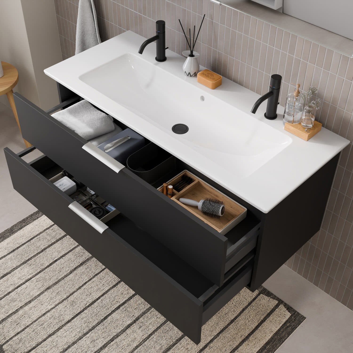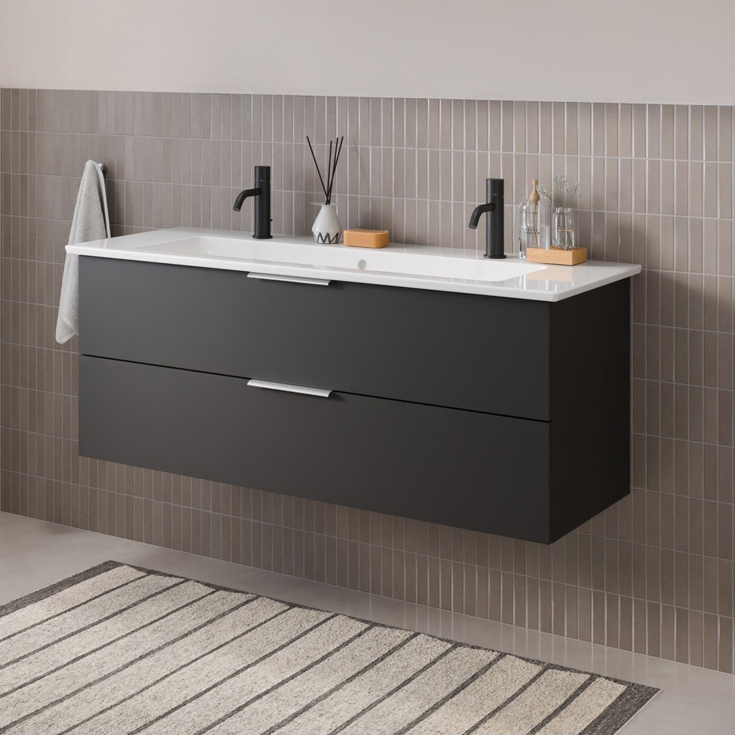 Flexibel. Passgenau. Stilvoll. – Die Badkollektion, die sich Ihrem Waschtisch anpasst!