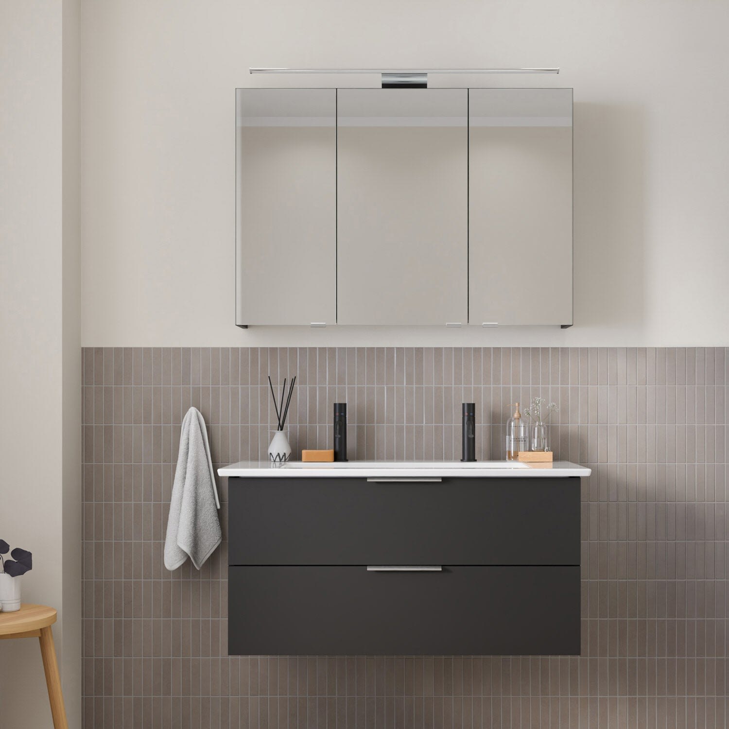 Steinkamp Living 2.0 Spiegelschrank 100 cm mit 3 Türen und LED-Aufsatzleuchte