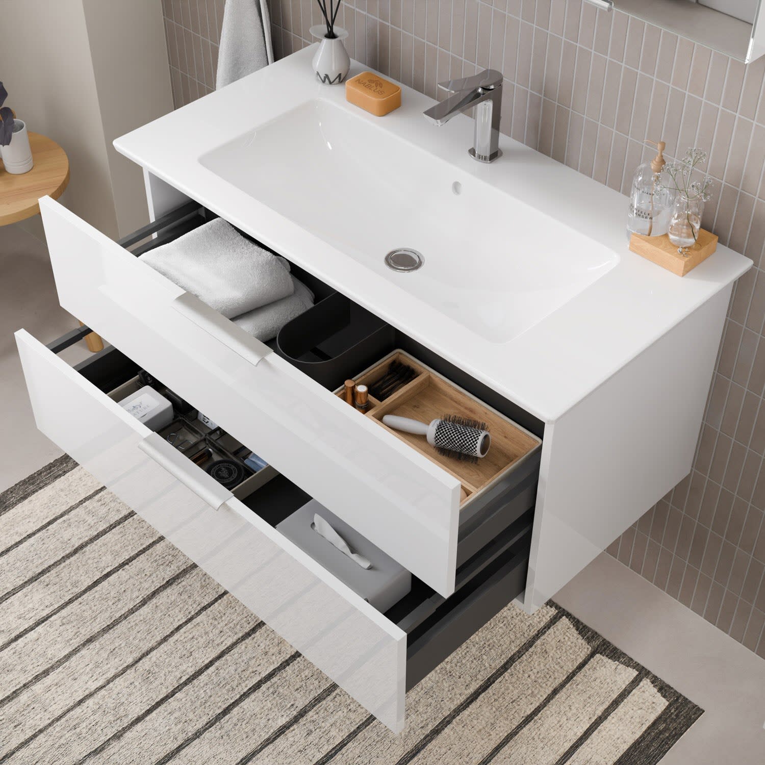 Flexibel. Passgenau. Stilvoll. – Die Badkollektion, die sich Ihrem Waschtisch anpasst!