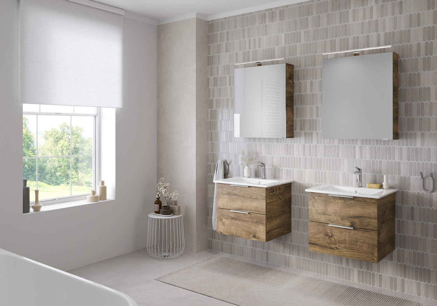 Flexibel. Passgenau. Stilvoll. – Die Badkollektion, die sich Ihrem Waschtisch anpasst!