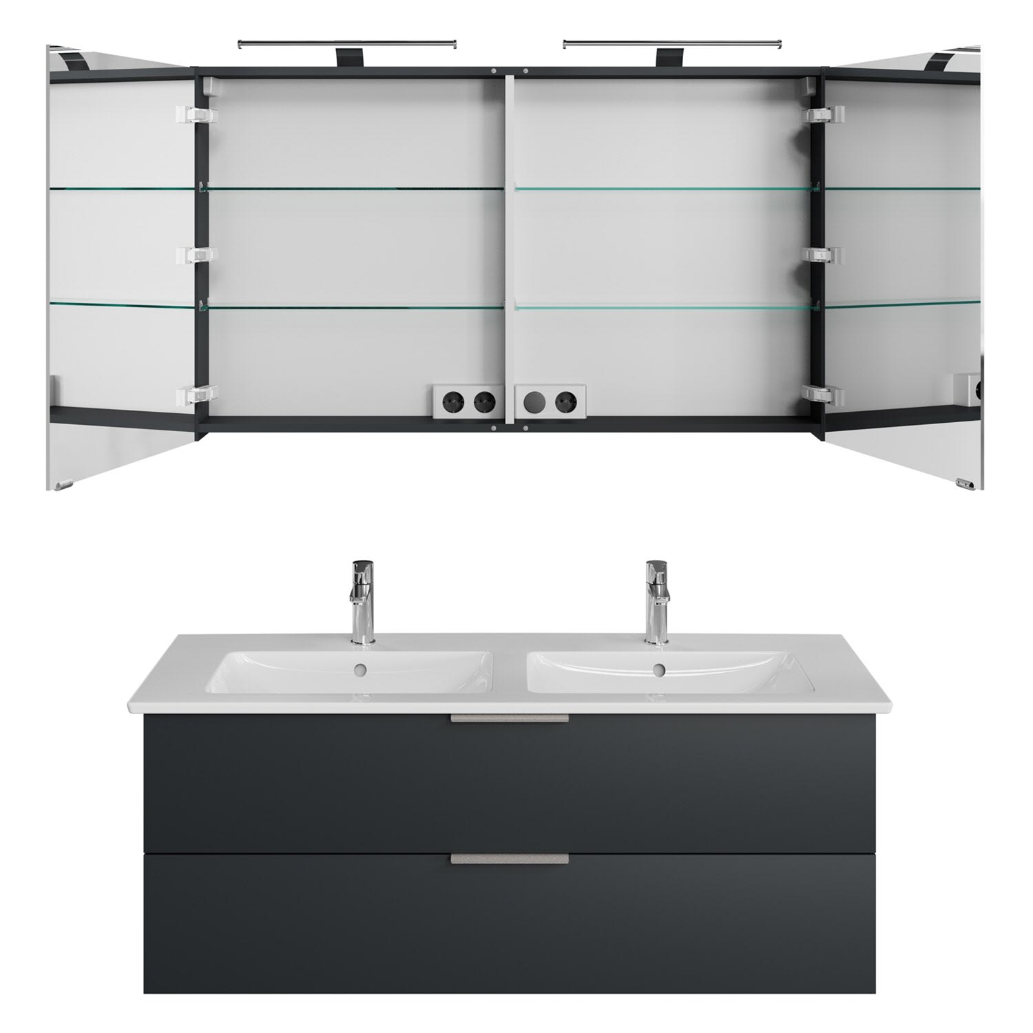 Steinkamp Living 2.0 / Villeroy & Boch Venticello Badmöbel Set 130 cm mit Spiegelschrank, 2 Türen