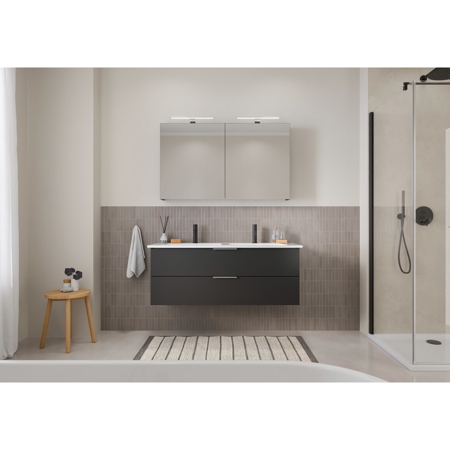 Flexibel. Passgenau. Stilvoll. – Die Badkollektion, die sich Ihrem Waschtisch anpasst!