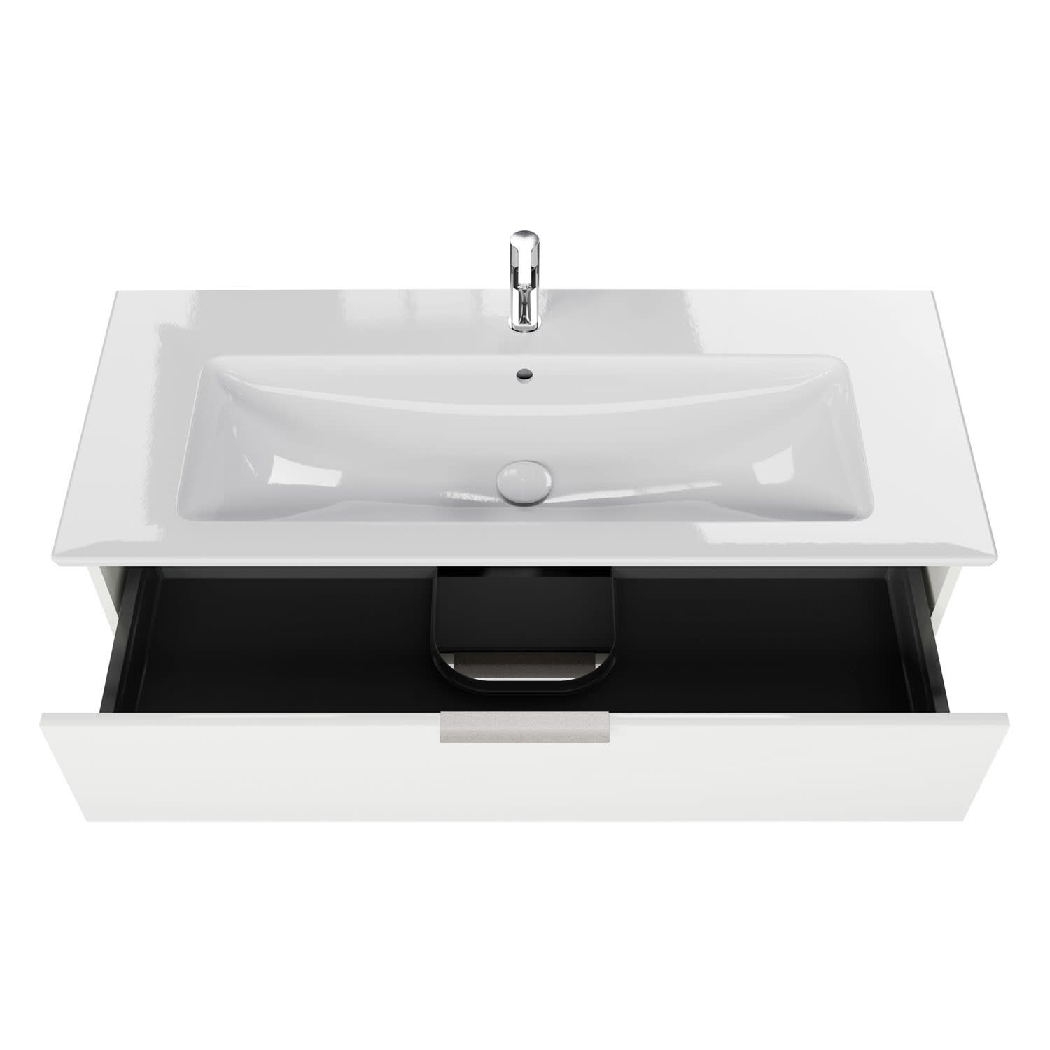 Kombinieren Sie das Design eines Markenwaschtischs mit einer attraktiven Stauraumlösung der Kollektion Living 2.0.