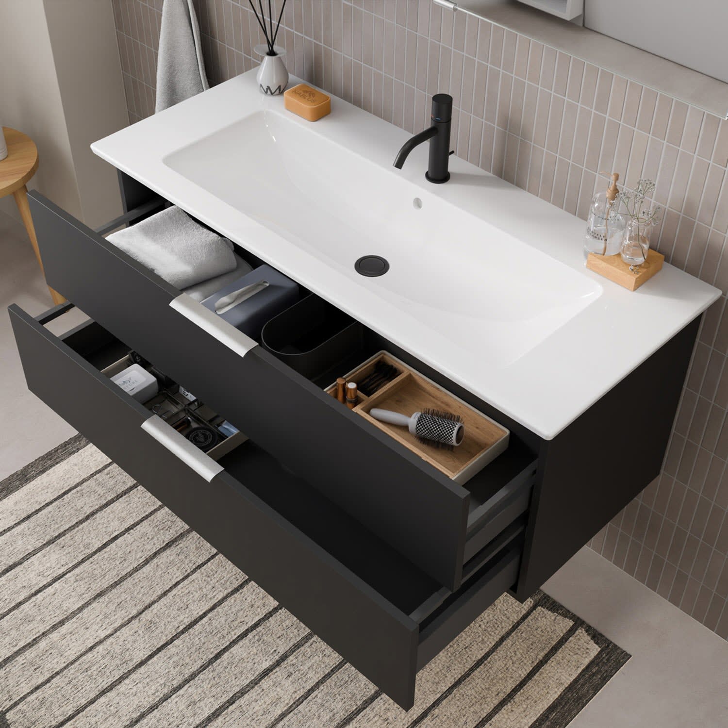 Flexibel. Passgenau. Stilvoll. – Die Badkollektion, die sich Ihrem Waschtisch anpasst!