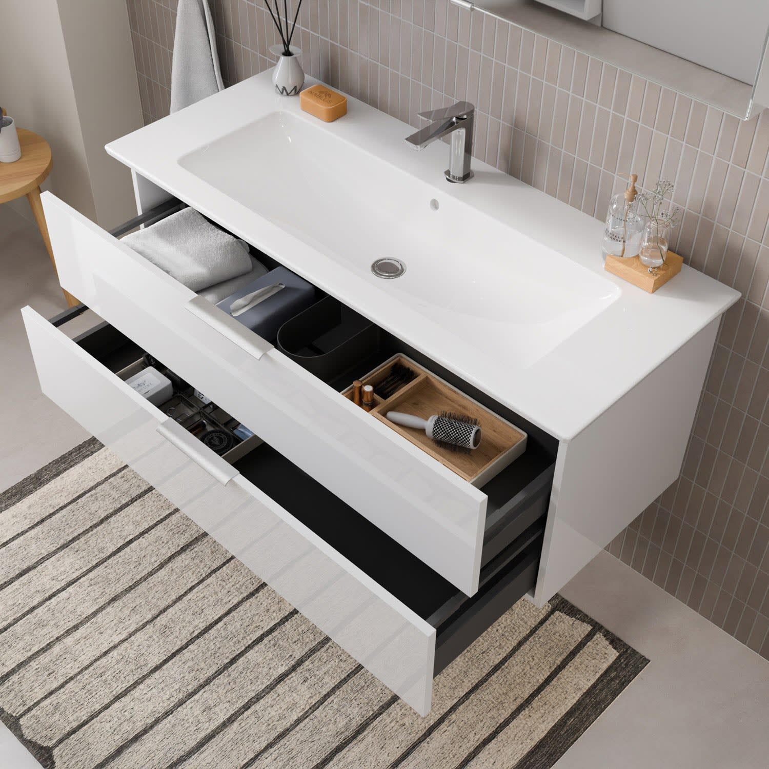 Kombinieren Sie das Design eines Markenwaschtischs mit einer attraktiven Stauraumlösung der Kollektion Living 2.0.