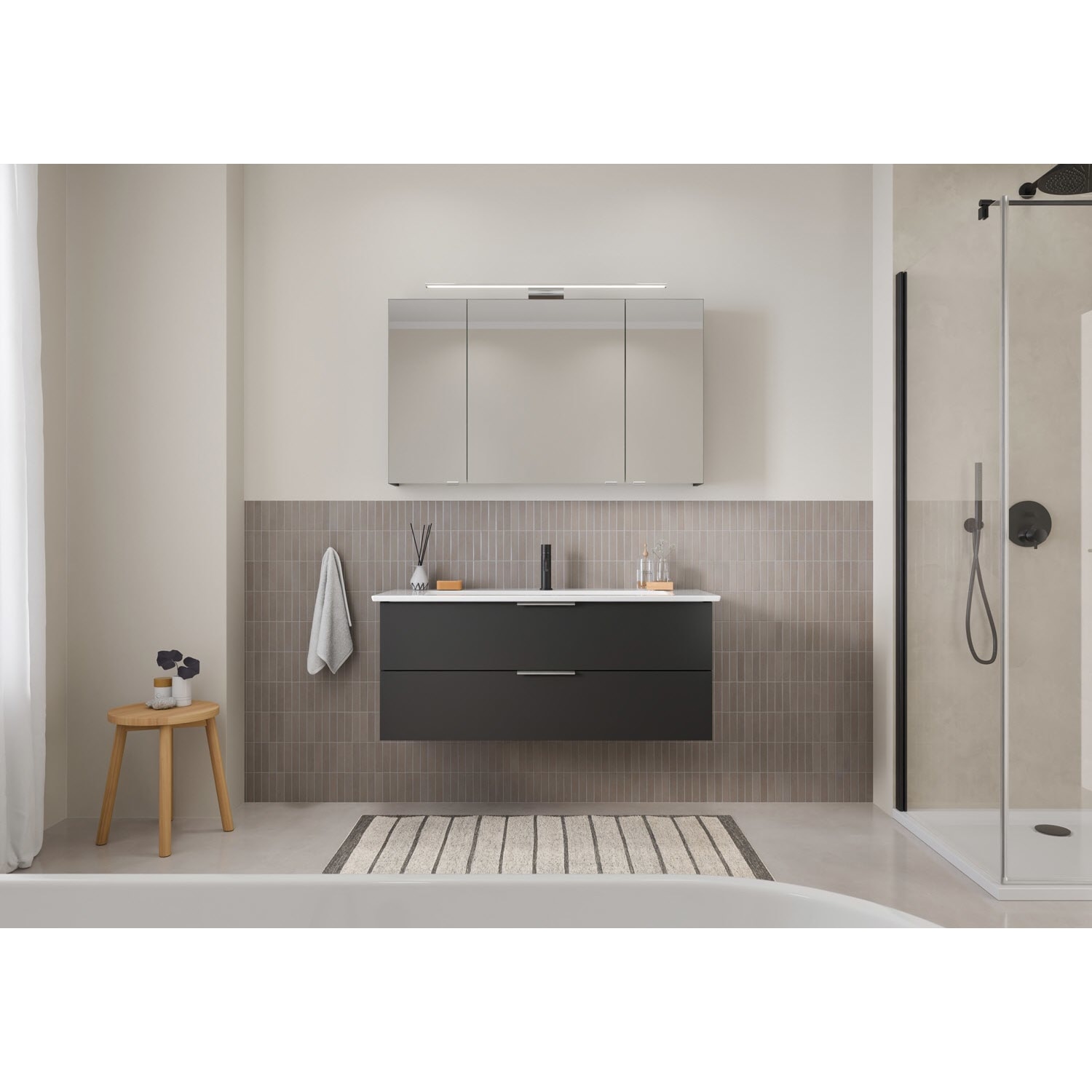Flexibel. Passgenau. Stilvoll. – Die Badkollektion, die sich Ihrem Waschtisch anpasst!