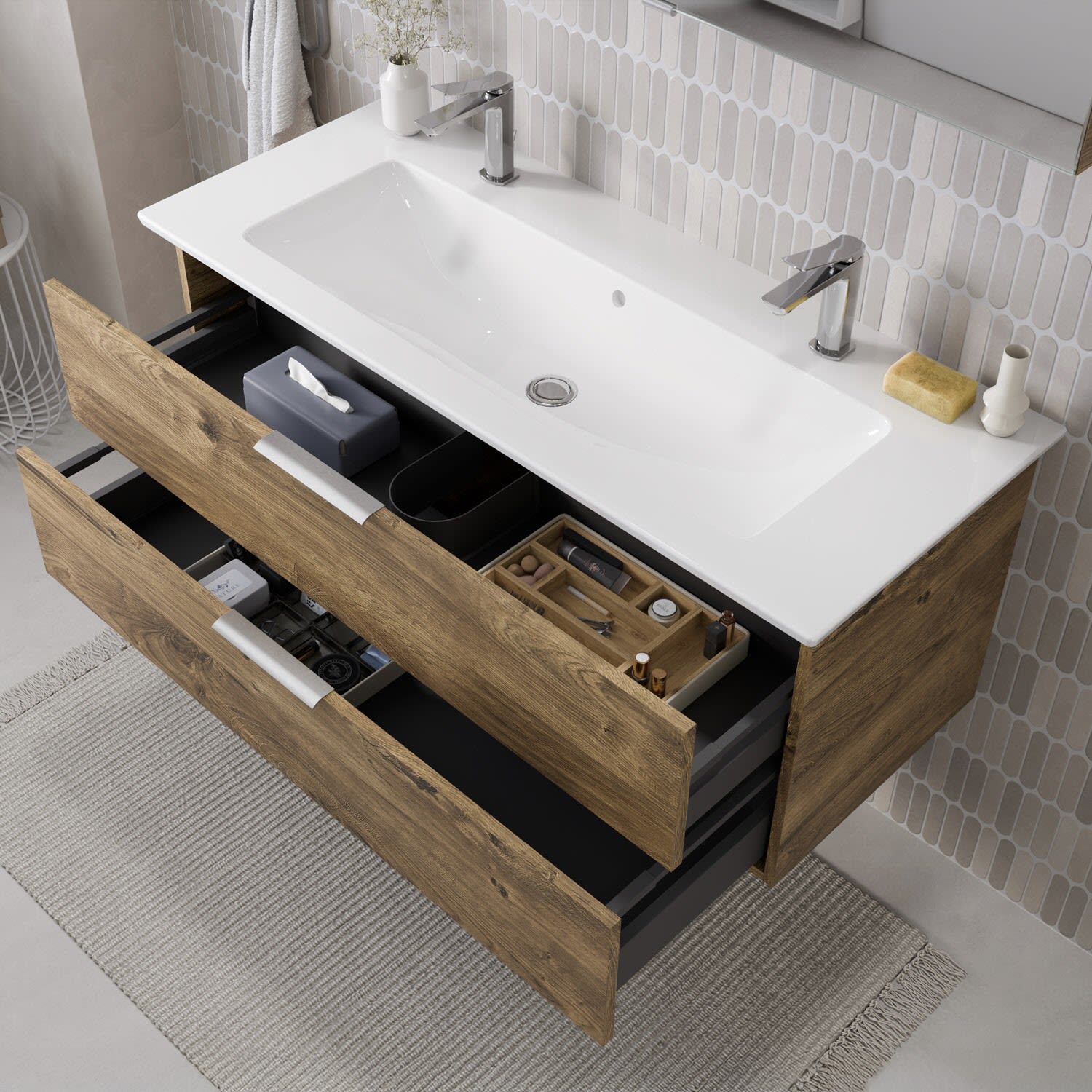 Flexibel. Passgenau. Stilvoll. – Die Badkollektion, die sich Ihrem Waschtisch anpasst!