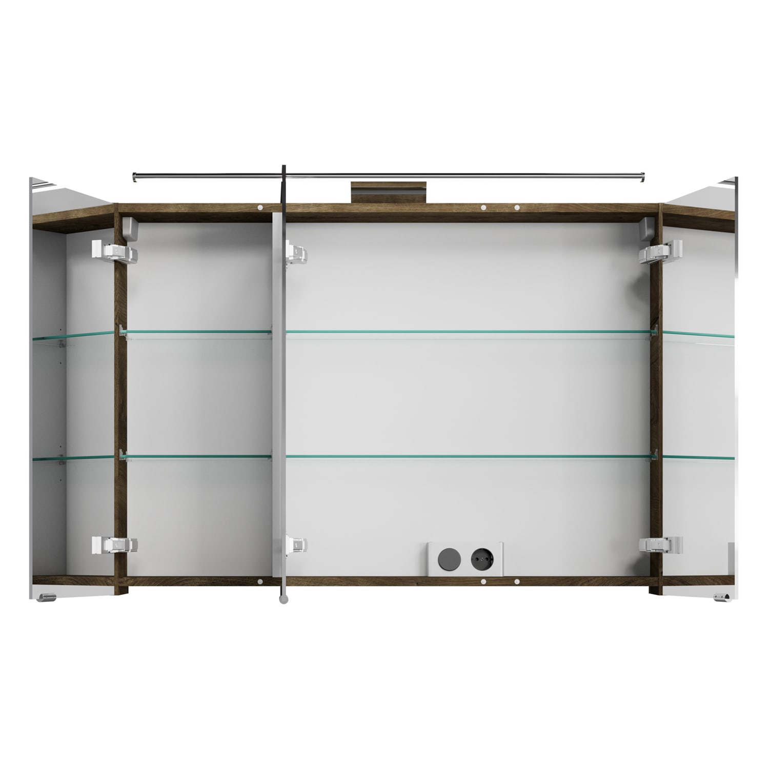 Erhältlich in verschiedenen, zeitgemäßen Dekoren und ausgestattet mit modernem, aufgesetztem Griff aus gebürstetem Edelstahl, verbindet Living 2.0 zeitloses Design mit maximaler Funktionalität. Je nach Waschplatzbreite sorgen großzügige Auszüge oder Türen für optimalen Stauraum – übersichtlich, griffbereit, stilvoll. Ein Spiegelschrank mit LED-Aufsatzleuchte komplettiert das Möbelset.