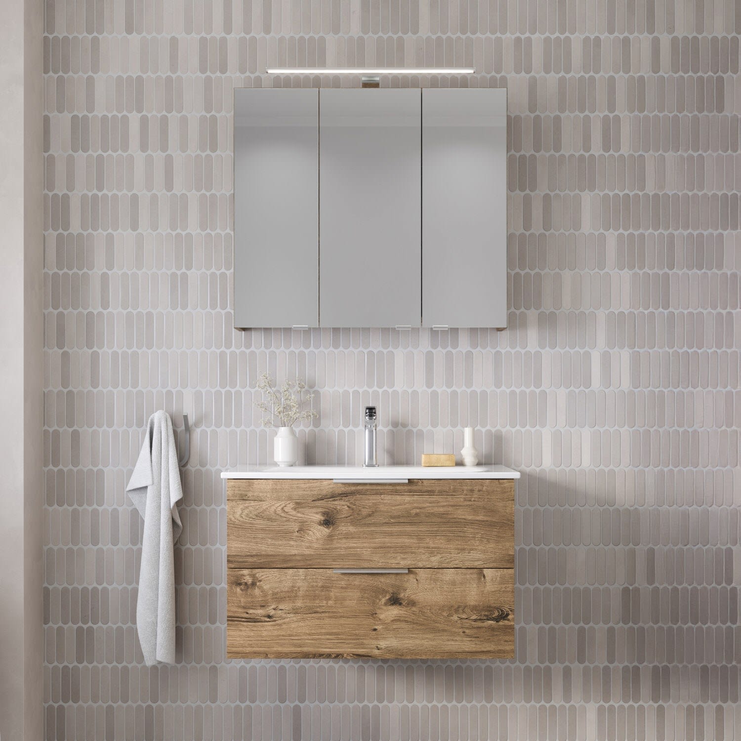 Steinkamp Living 2.0 Spiegelschrank 80 cm mit 3 Türen und LED-Aufsatzleuchte
