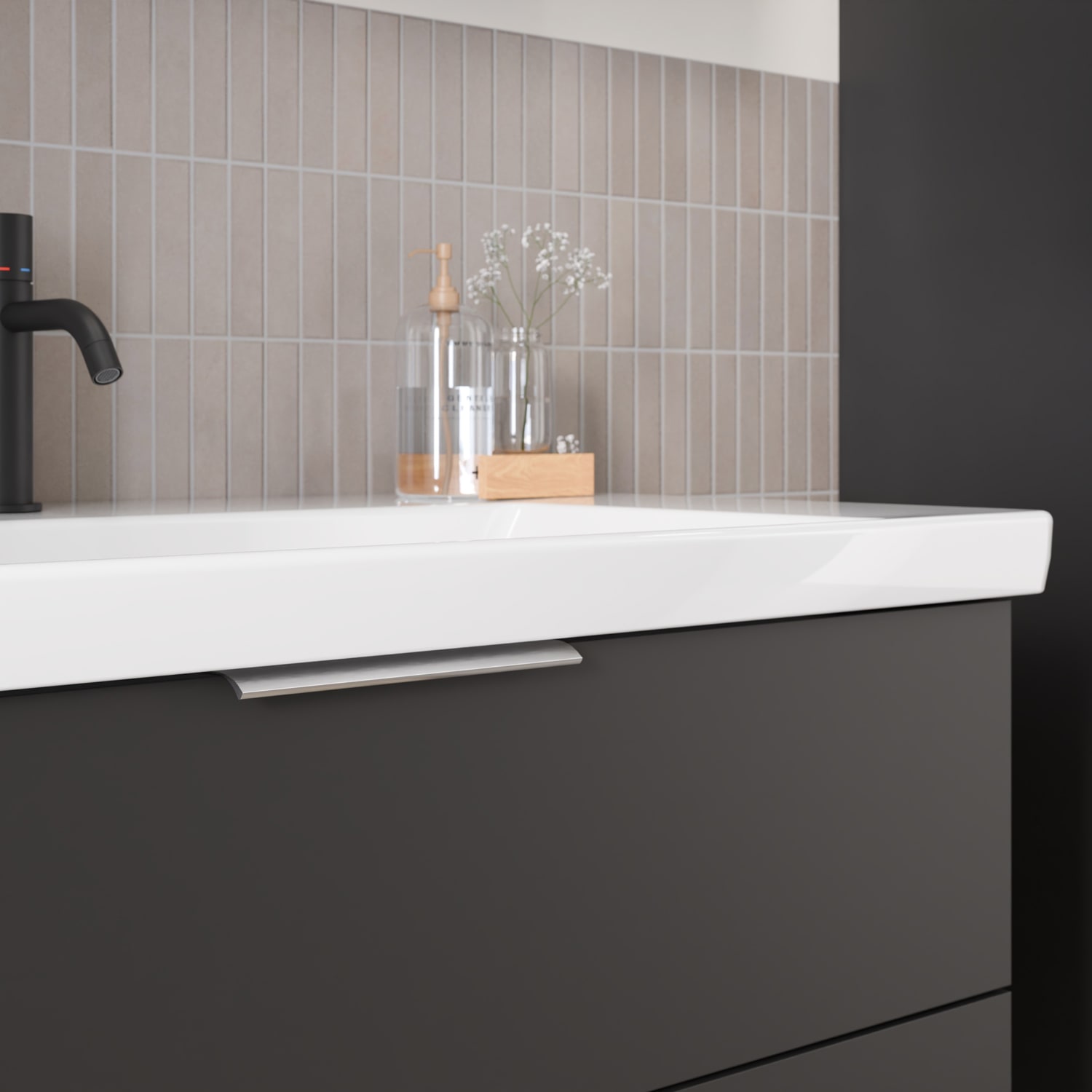Sie haben bereits einen Waschtisch in Ihrem Bad montiert und wünschen sich mehr Stauraum? Erhältlich in verschiedenen, zeitgemäßen Dekoren und ausgestattet mit modernem, aufgesetztem Griff aus gebürstetem Edelstahl, verbinden die Living 2.0 Waschtischunterschränke zeitloses Design mit maximaler Funktionalität. Je nach Waschplatzbreite sorgen großzügige Auszüge oder Türen für optimalen Stauraum – übersichtlich, griffbereit, stilvoll. Für noch mehr Stauraum ergänzen Sie einen Spiegelschrank oder Hochschrank im passenden Dekor.