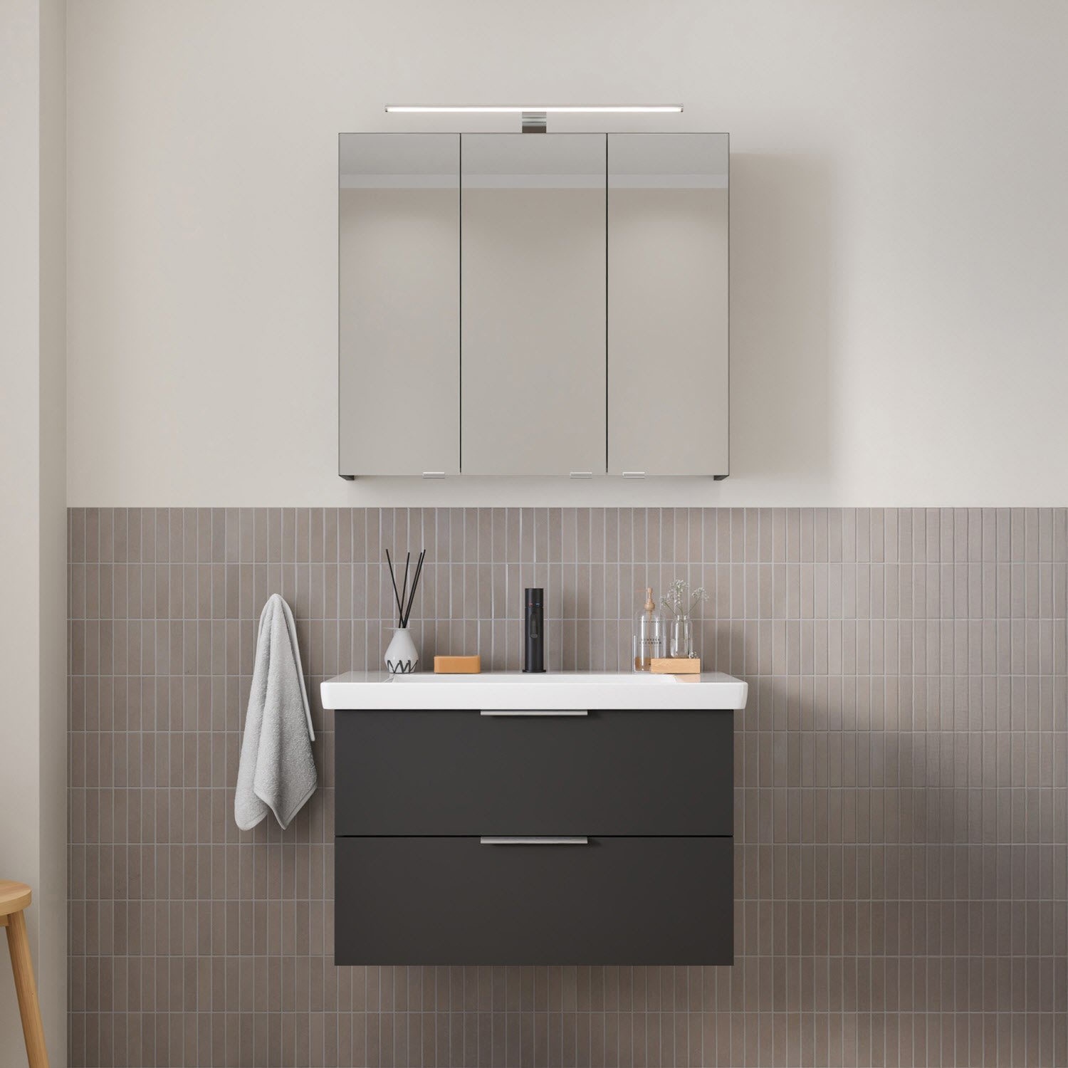 Steinkamp Living 2.0 Spiegelschrank 80 cm mit 3 Türen und LED-Aufsatzleuchte