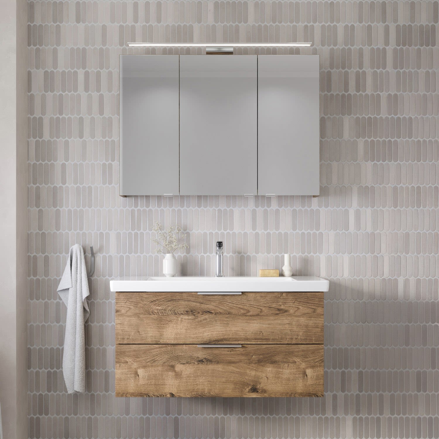 Steinkamp Living 2.0 Spiegelschrank 100 cm mit 3 Türen und LED-Aufsatzleuchte