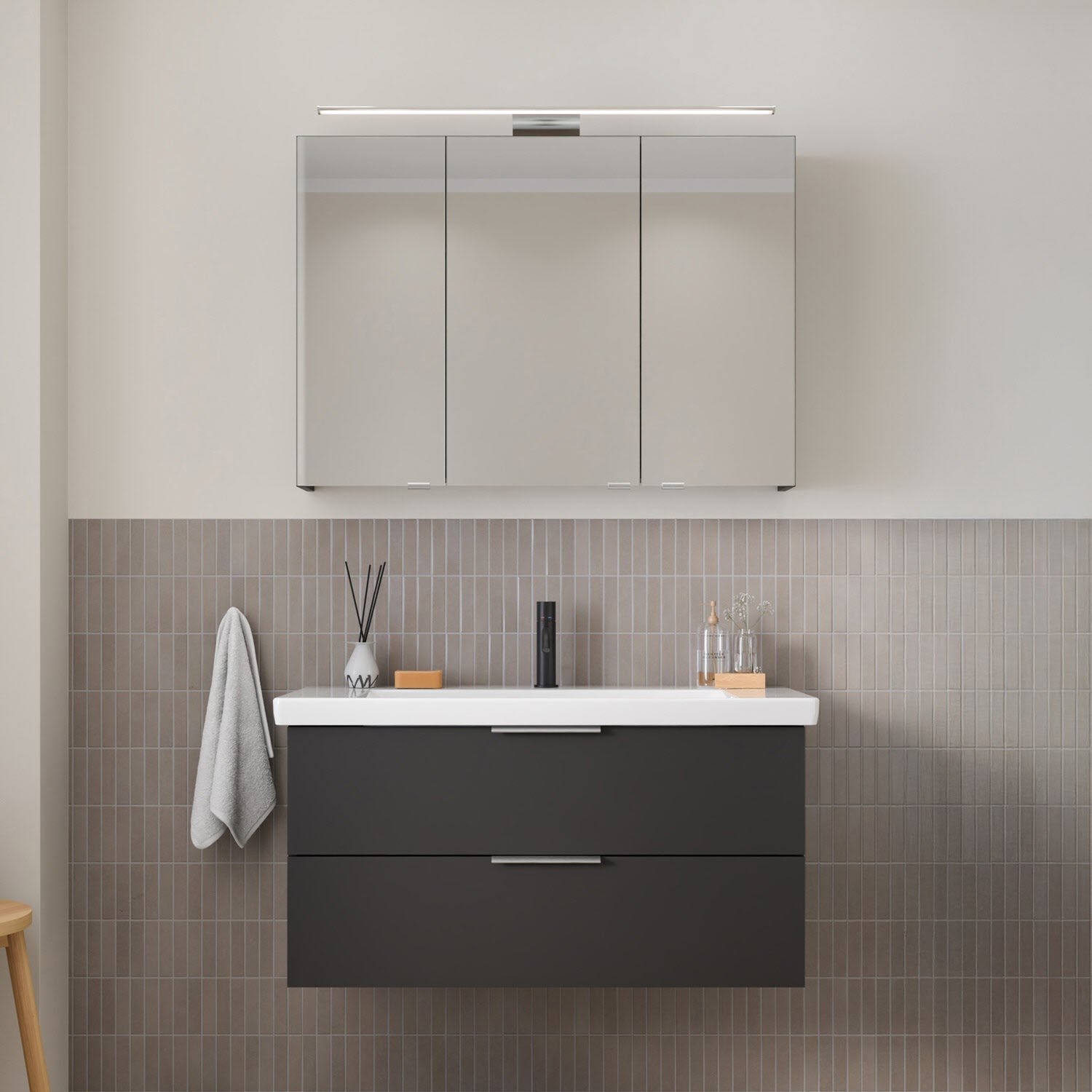 Steinkamp Living 2.0 Spiegelschrank 100 cm mit 3 Türen und LED-Aufsatzleuchte