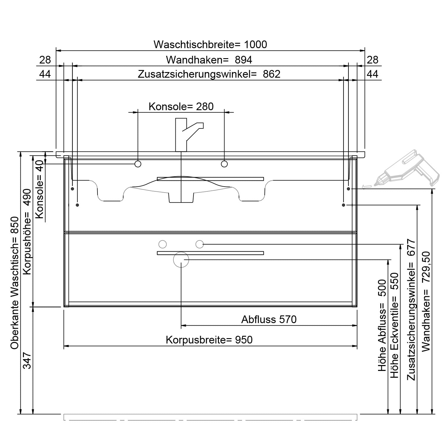 Steinkamp Living 2.0 Waschtischunterschrank für Villeroy & Boch Venticello Waschtisch 100 cm, Becken links