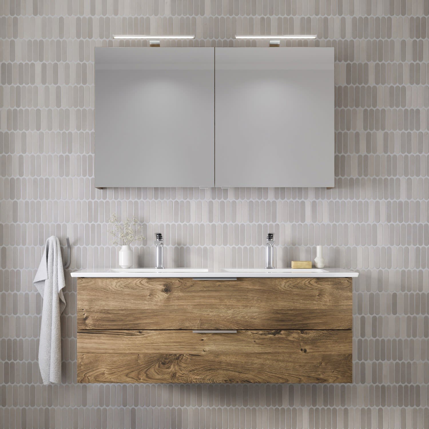 Steinkamp Living 2.0 Spiegelschrank 120 cm mit 2 Türen und LED-Aufsatzleuchten