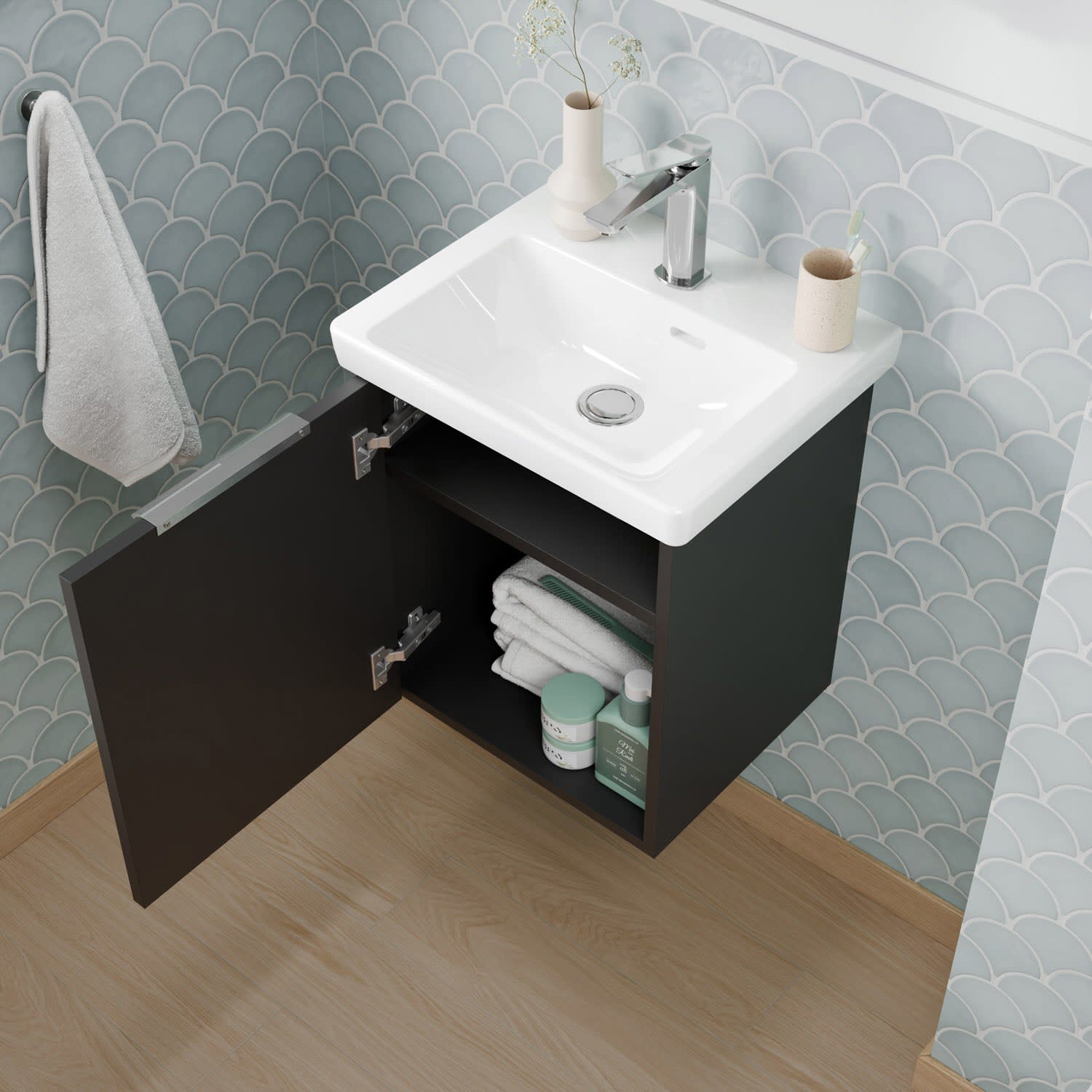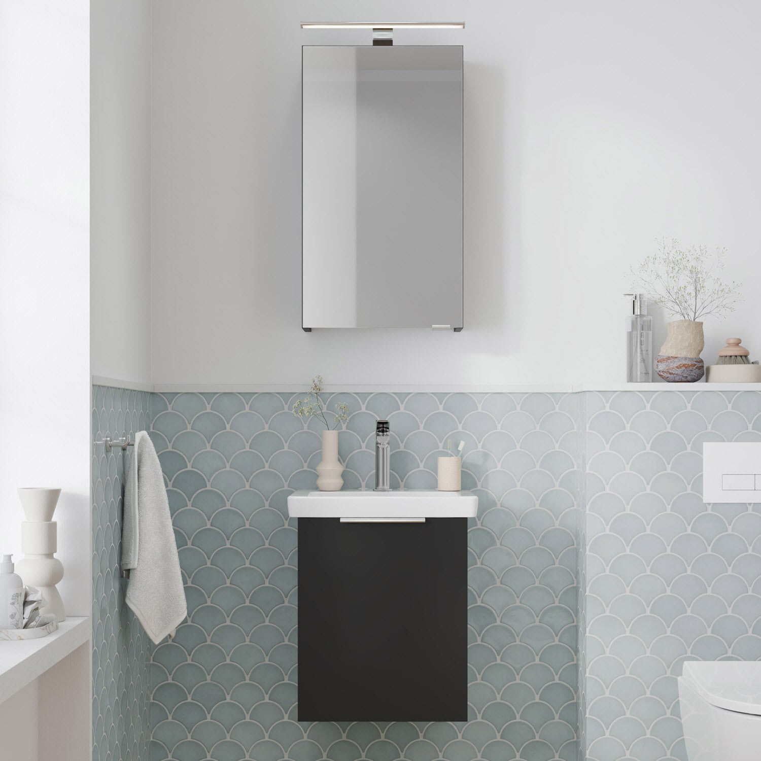 Flexibel. Passgenau. Stilvoll. – Die Badkollektion, die sich Ihrem Waschtisch anpasst!