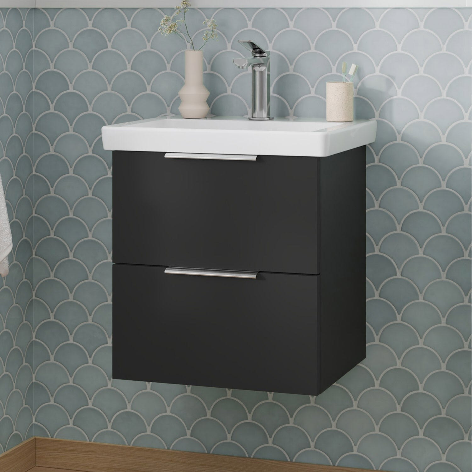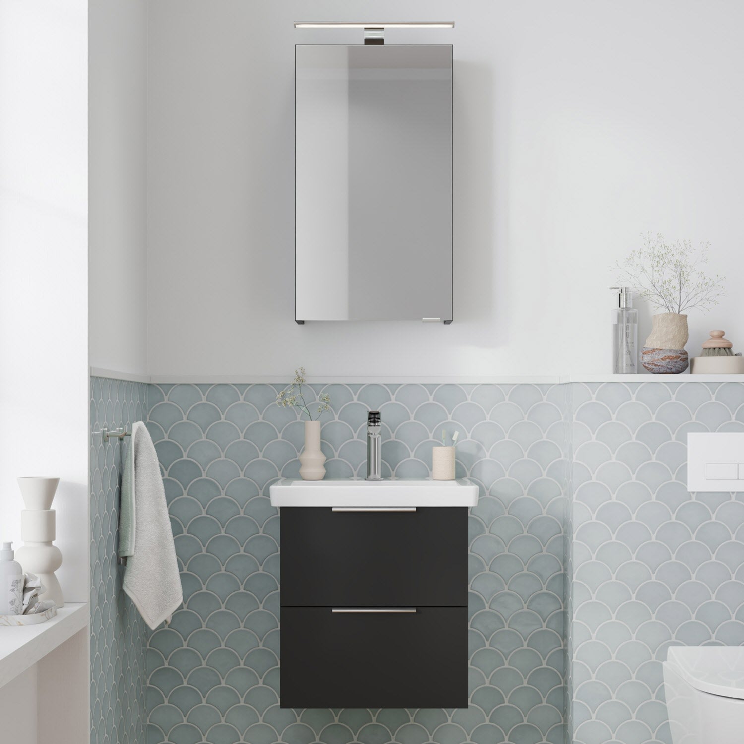 Flexibel. Passgenau. Stilvoll. – Die Badkollektion, die sich Ihrem Waschtisch anpasst!