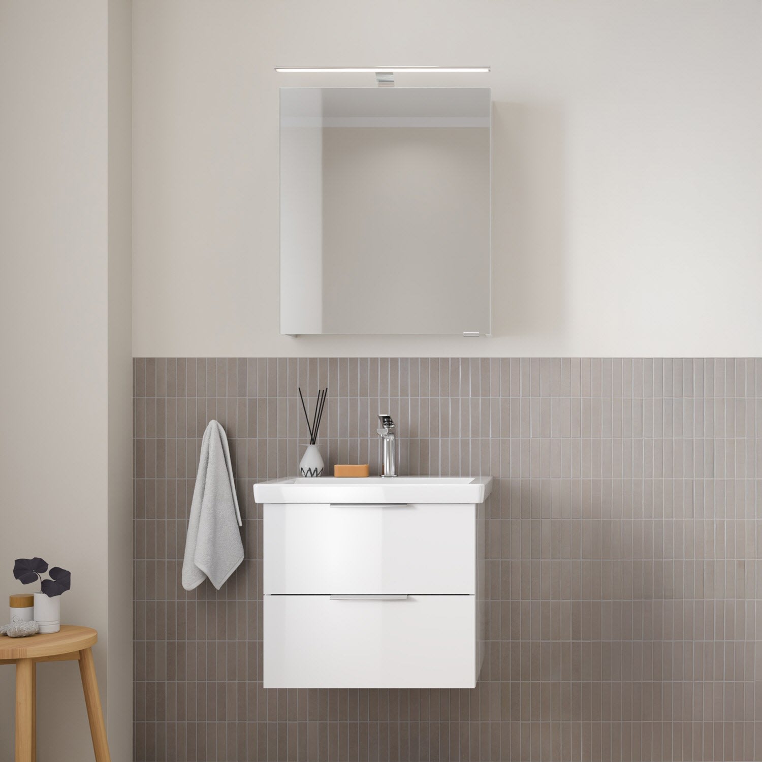 Flexibel. Passgenau. Stilvoll. – Die Badkollektion, die sich Ihrem Waschtisch anpasst!