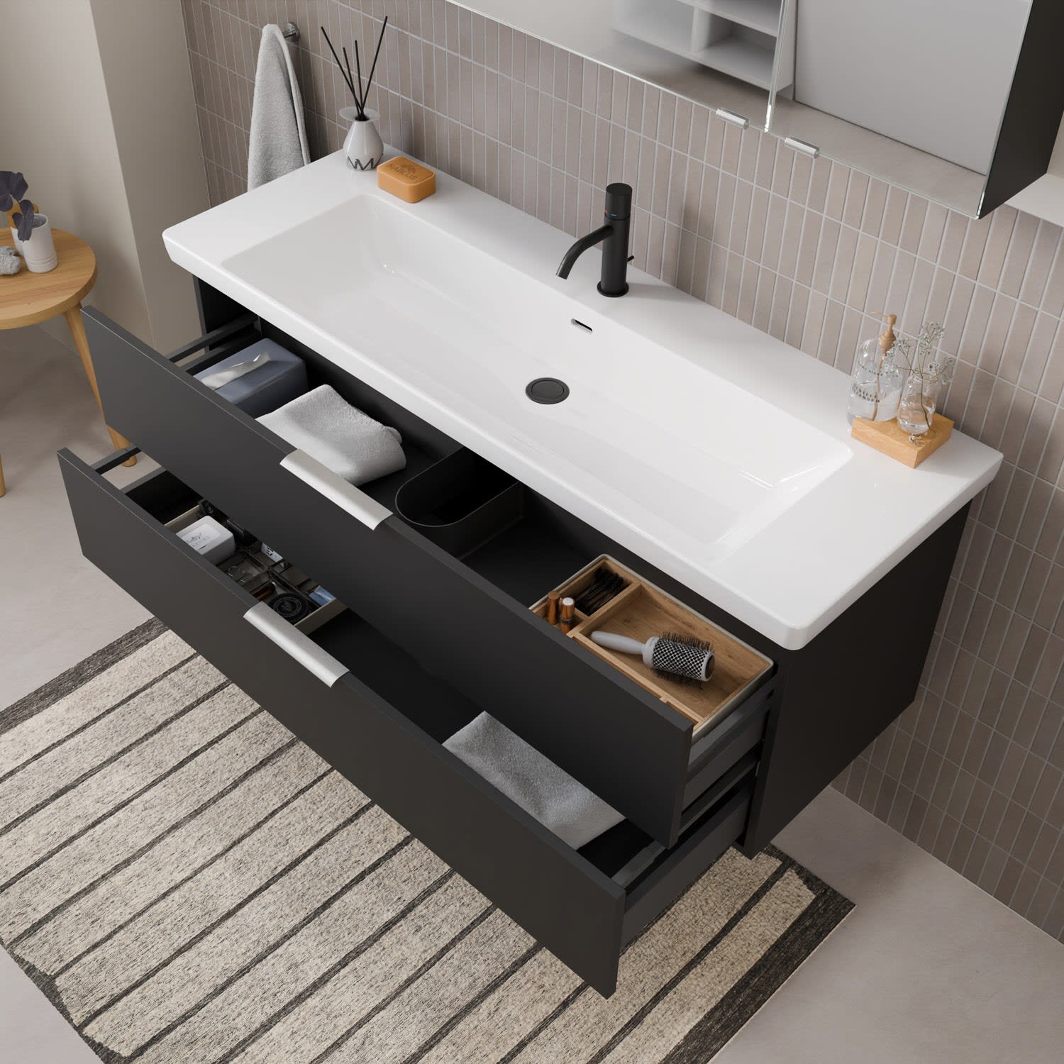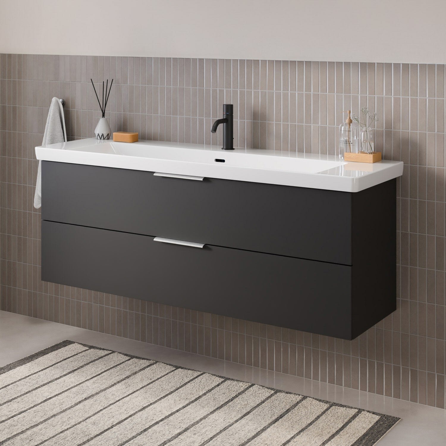Flexibel. Passgenau. Stilvoll. – Die Badkollektion, die sich Ihrem Waschtisch anpasst!