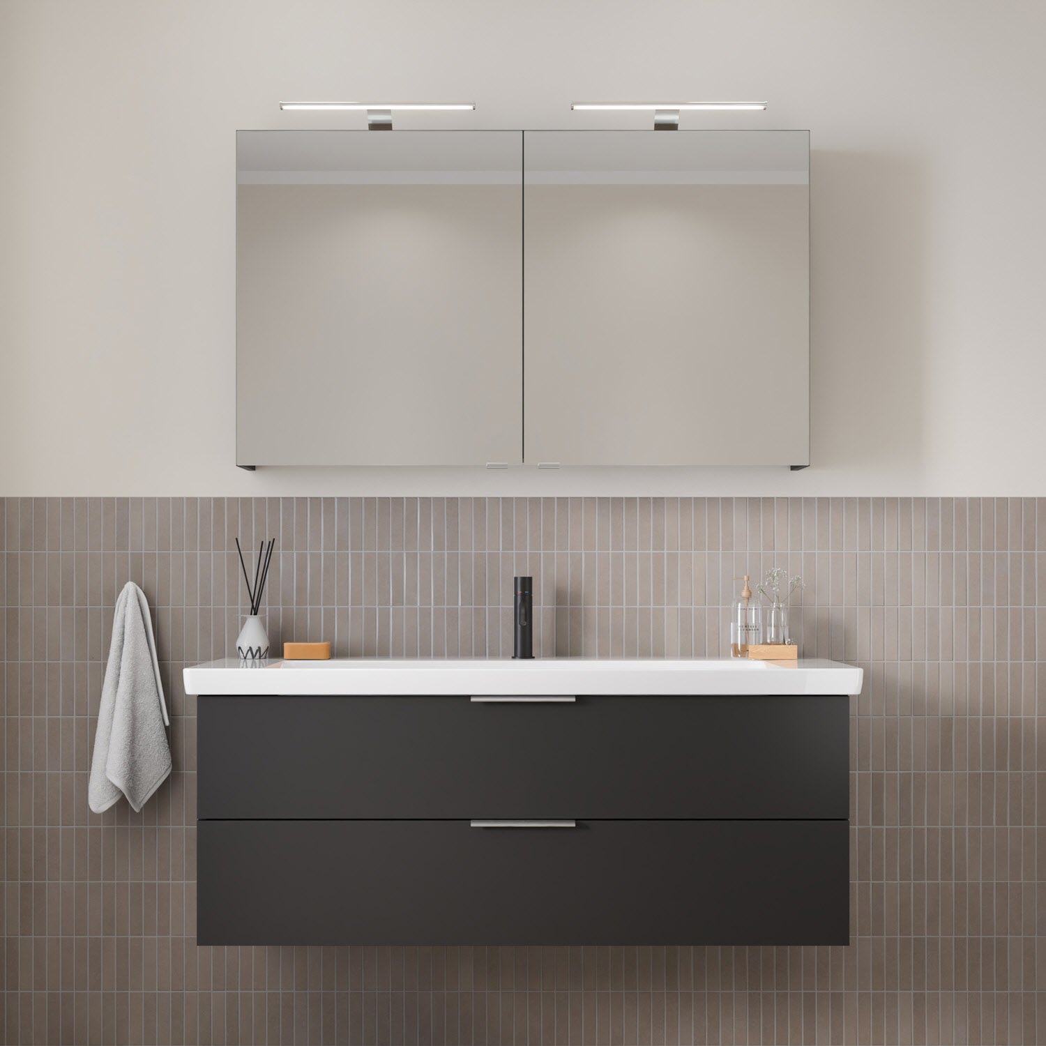 Steinkamp Living 2.0 Spiegelschrank 120 cm mit 2 Türen und LED-Aufsatzleuchten