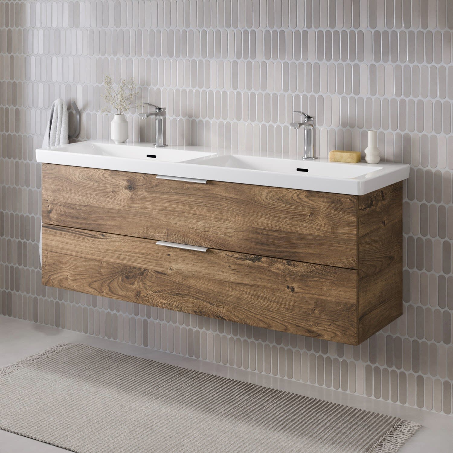 Flexibel. Passgenau. Stilvoll. – Die Badkollektion, die sich Ihrem Waschtisch anpasst!