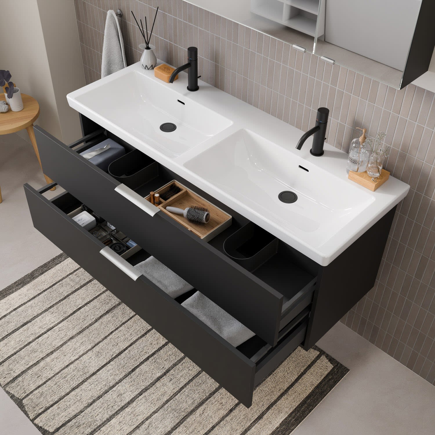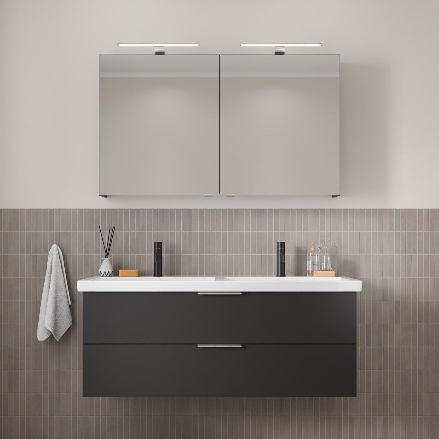 Flexibel. Passgenau. Stilvoll. – Die Badkollektion, die sich Ihrem Waschtisch anpasst!