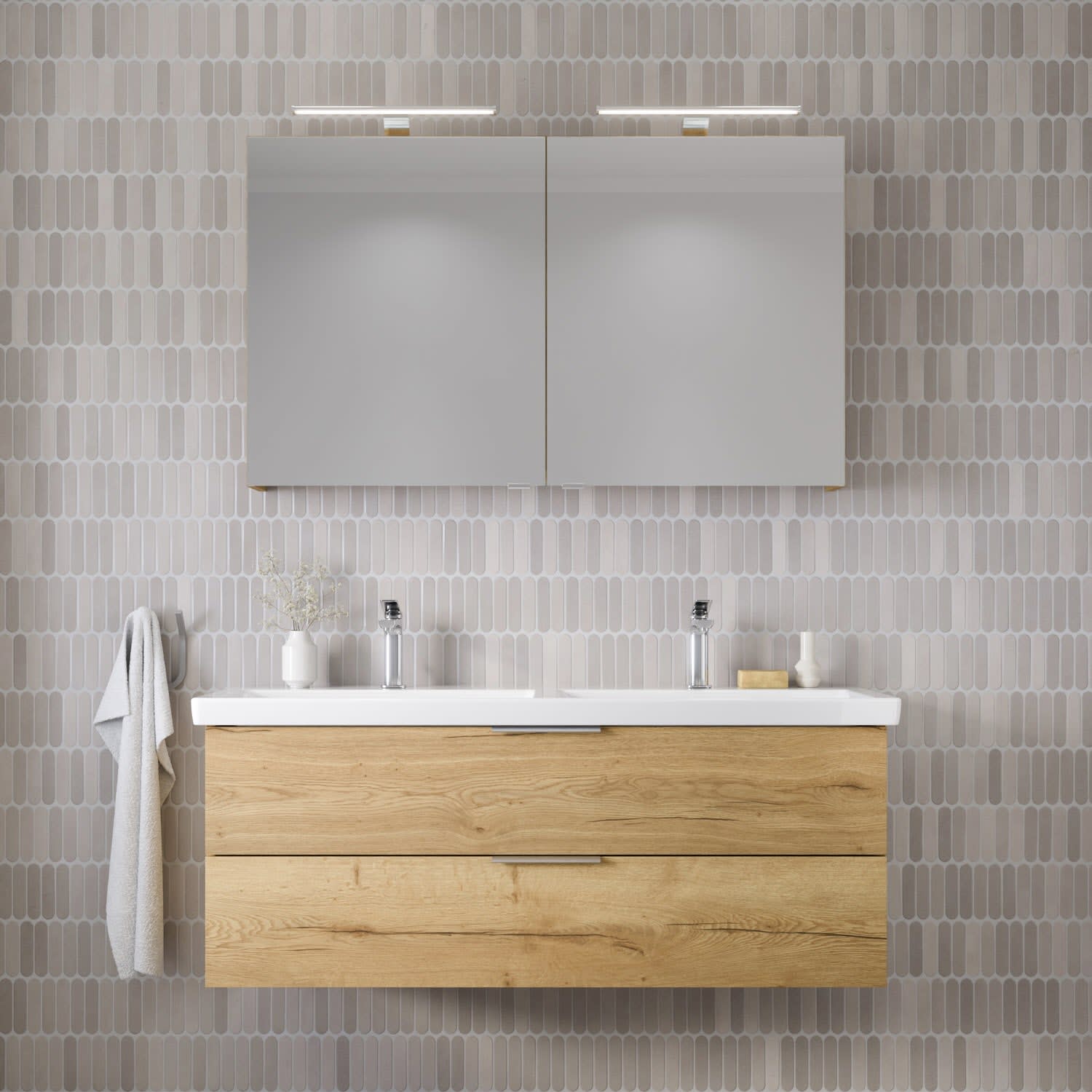 Steinkamp Living 2.0 Spiegelschrank 120 cm mit 2 Türen und LED-Aufsatzleuchten