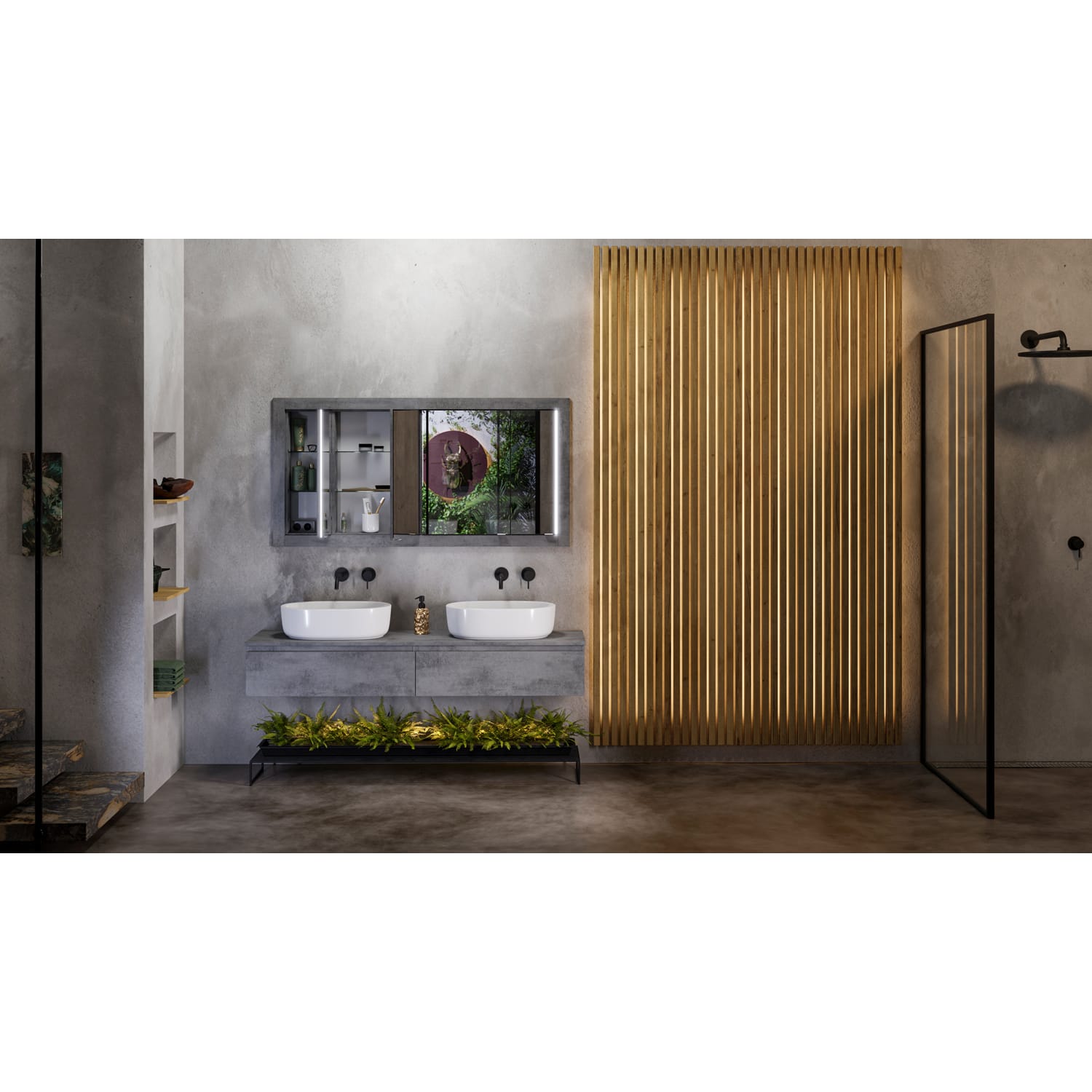 - 2 Schalter und 2 Steckdosen unten im Spiegelschrank eingebaut