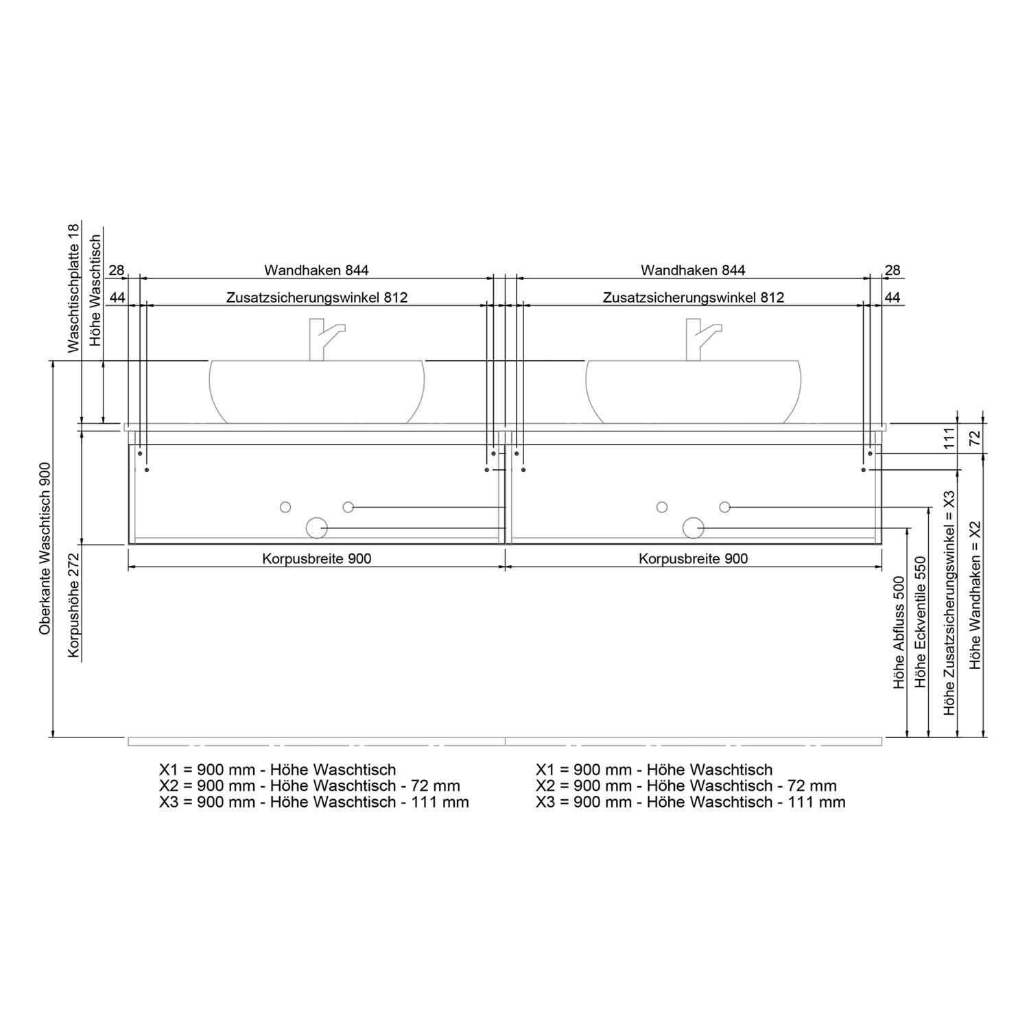 mit 2 Auszügen, für 2 Waschtische