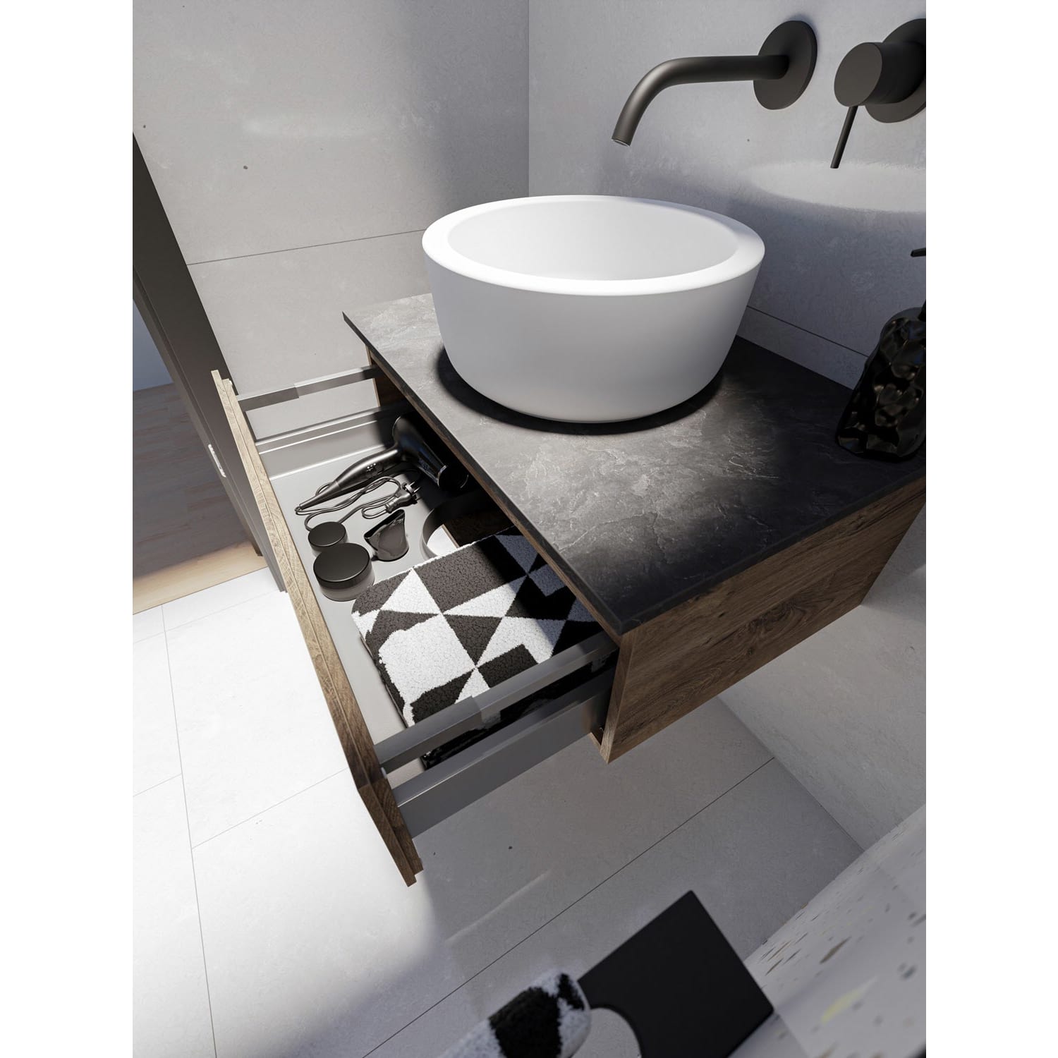 - Auszug mit Softeinzug und Metallzarge in lava grau