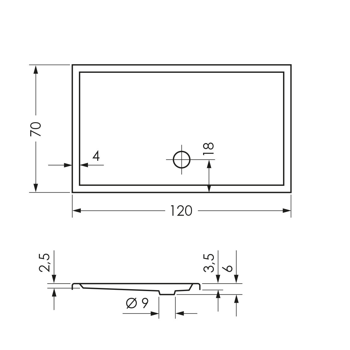 L: 120 B: 70 H: 6 cm
