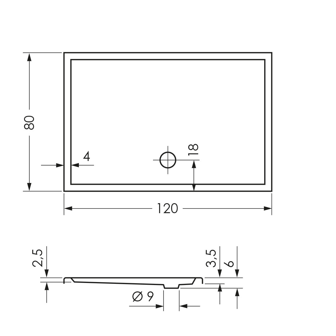 L: 120 B: 80 H: 6 cm