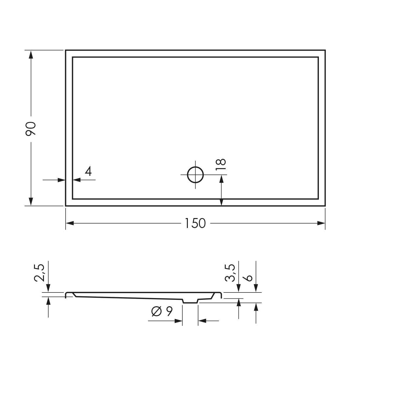 L: 150 B: 90 H: 6 cm