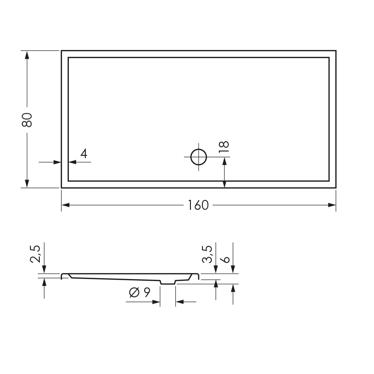 L: 160 B: 80 H: 6 cm