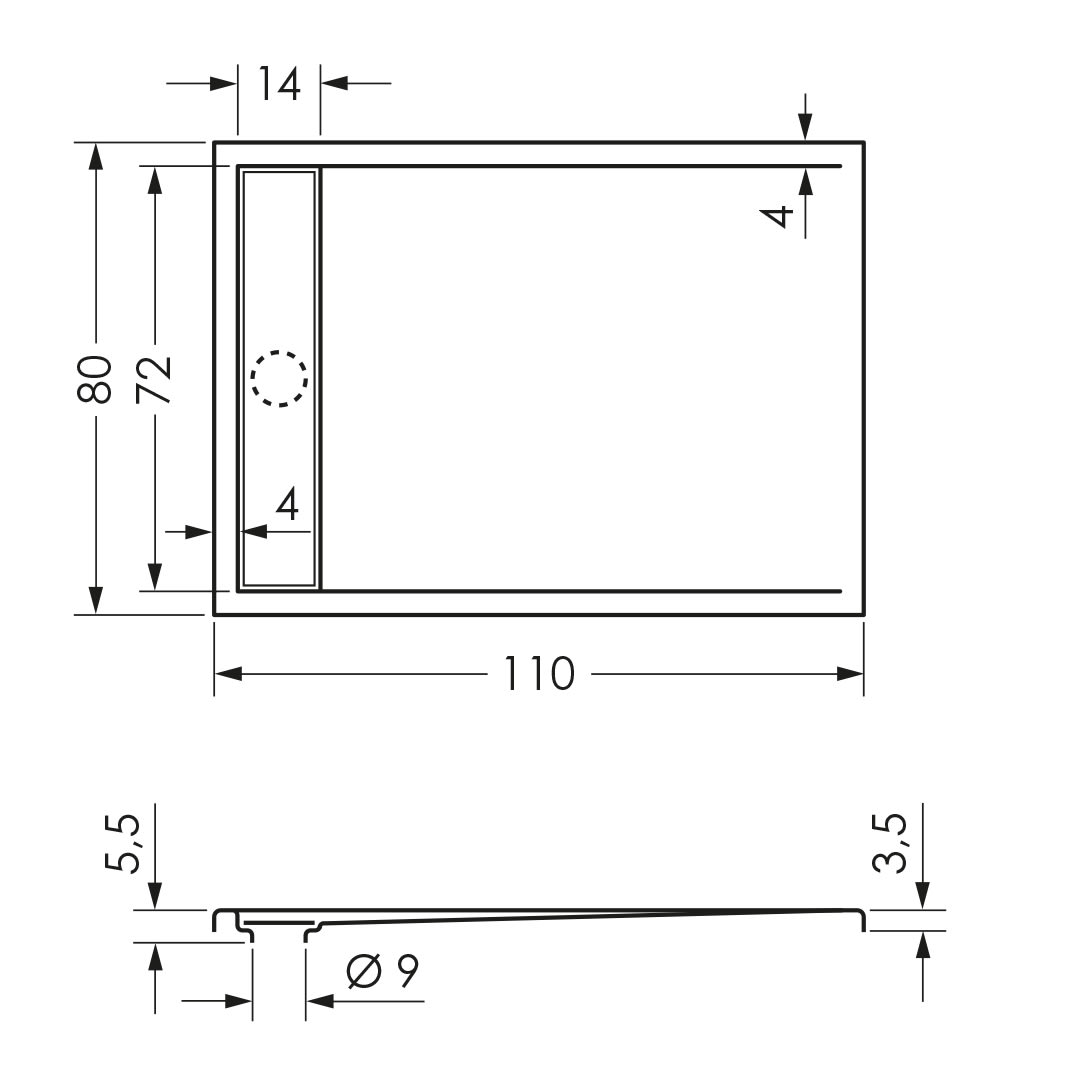 Steinkamp Living Duschwanne 110 x 80 cm mit Ablaufrinne , superflach
