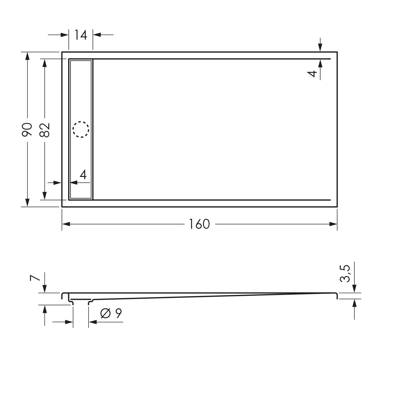 Steinkamp Living Duschwanne 160 x 90 cm mit Ablaufrinne, superflach