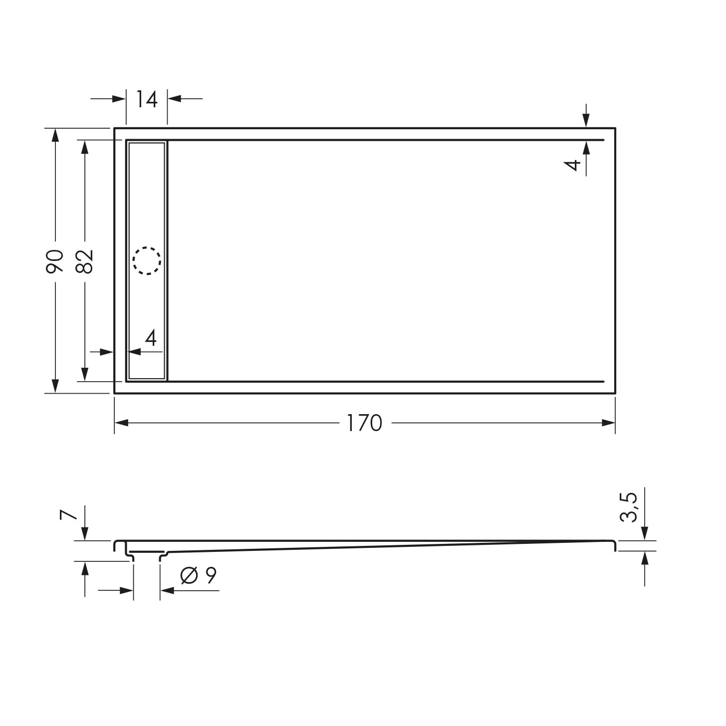 L: 170 B: 90 H: 7 cm