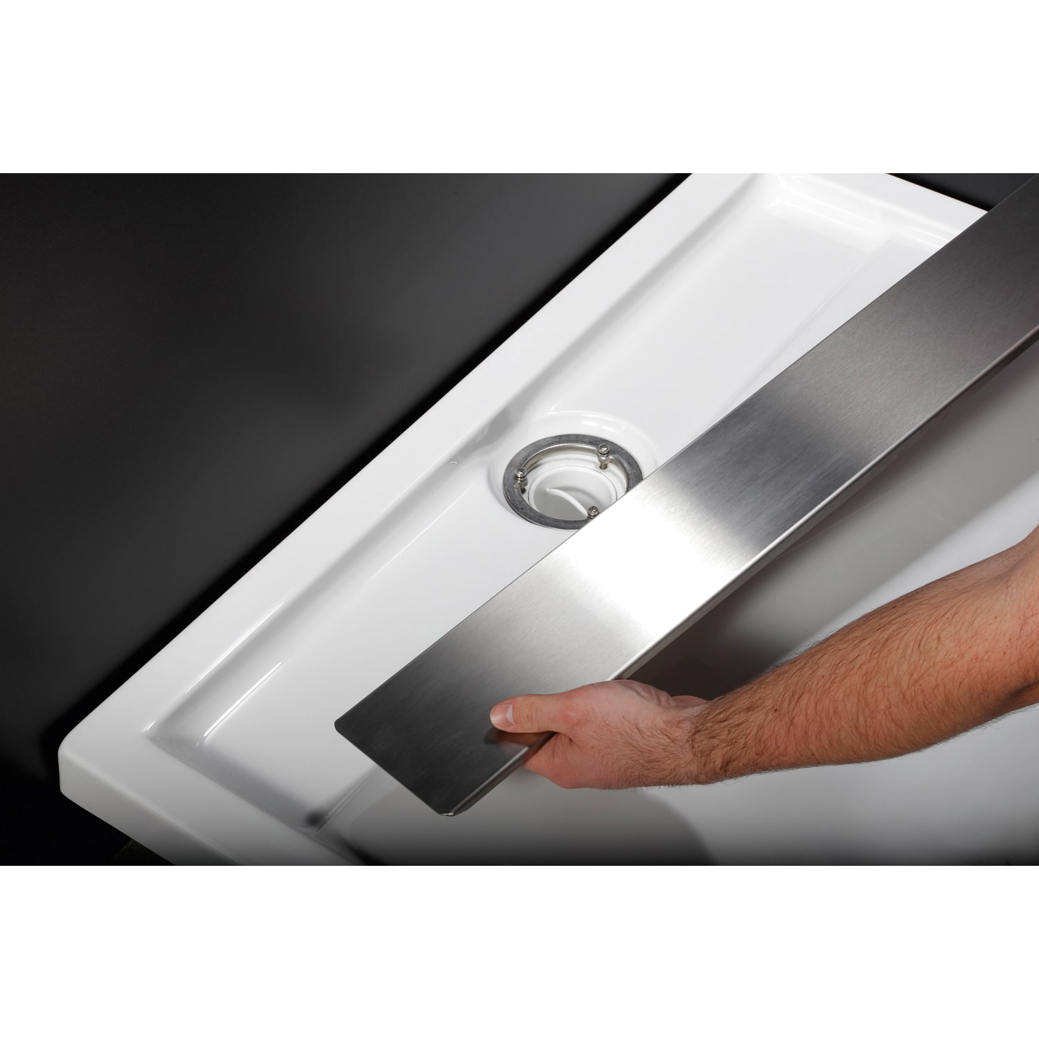 - superflaches modernes Design mit Rinnen-Ablauf in Edelstahl gebürstet