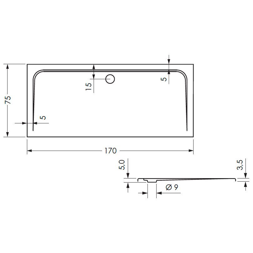 Steinkamp Plan Duschwanne 170 x 75 cm superflach mit Antirutsch
