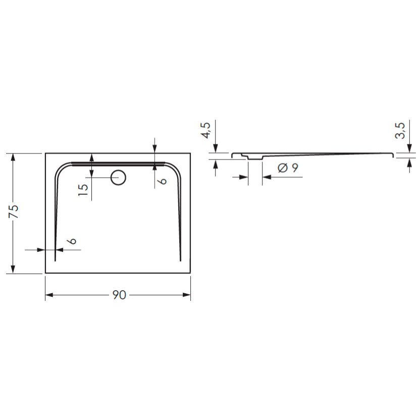 B: 90 T: 75 H: 4,5 cm