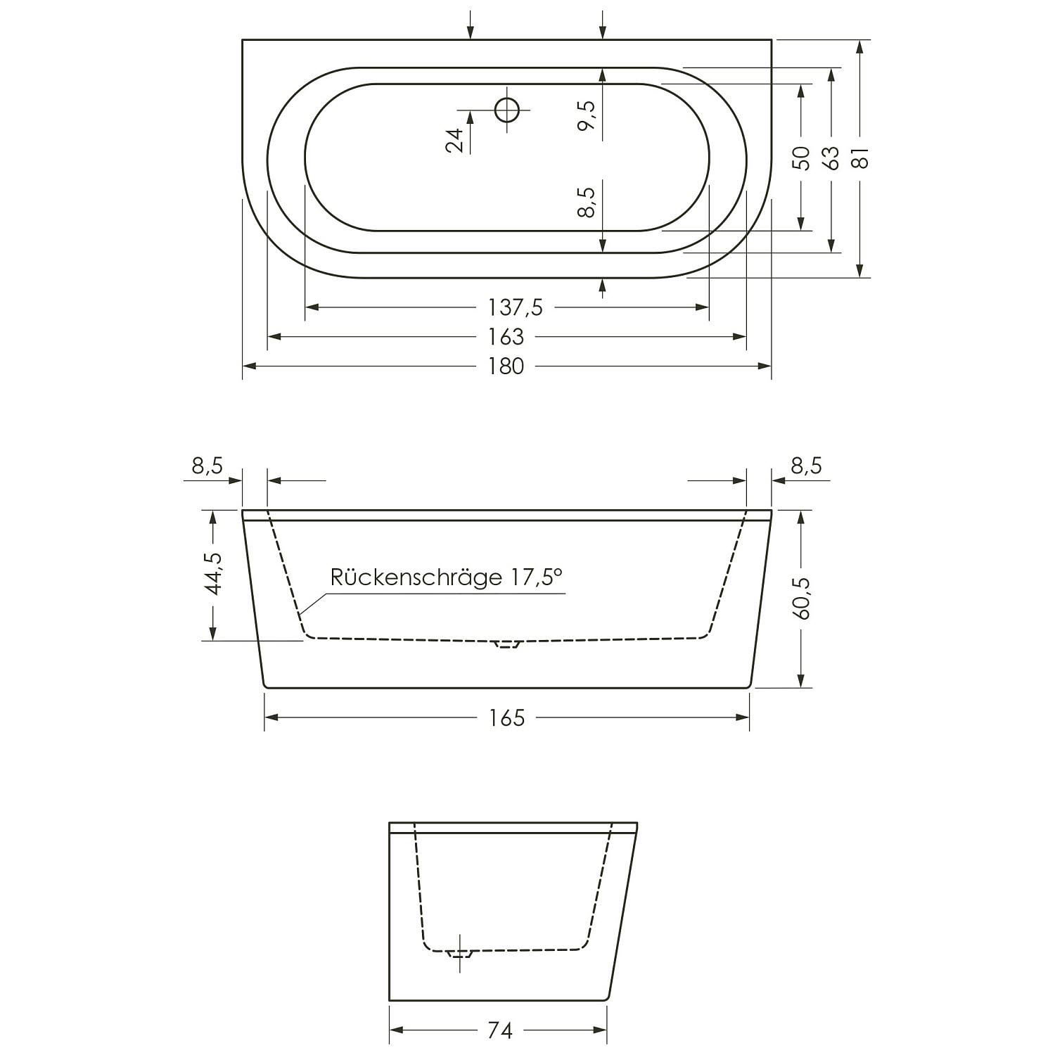 Steinkamp Life Vorwand-Badewanne 180 x 80 cm mit M5 Ablaufgarnitur