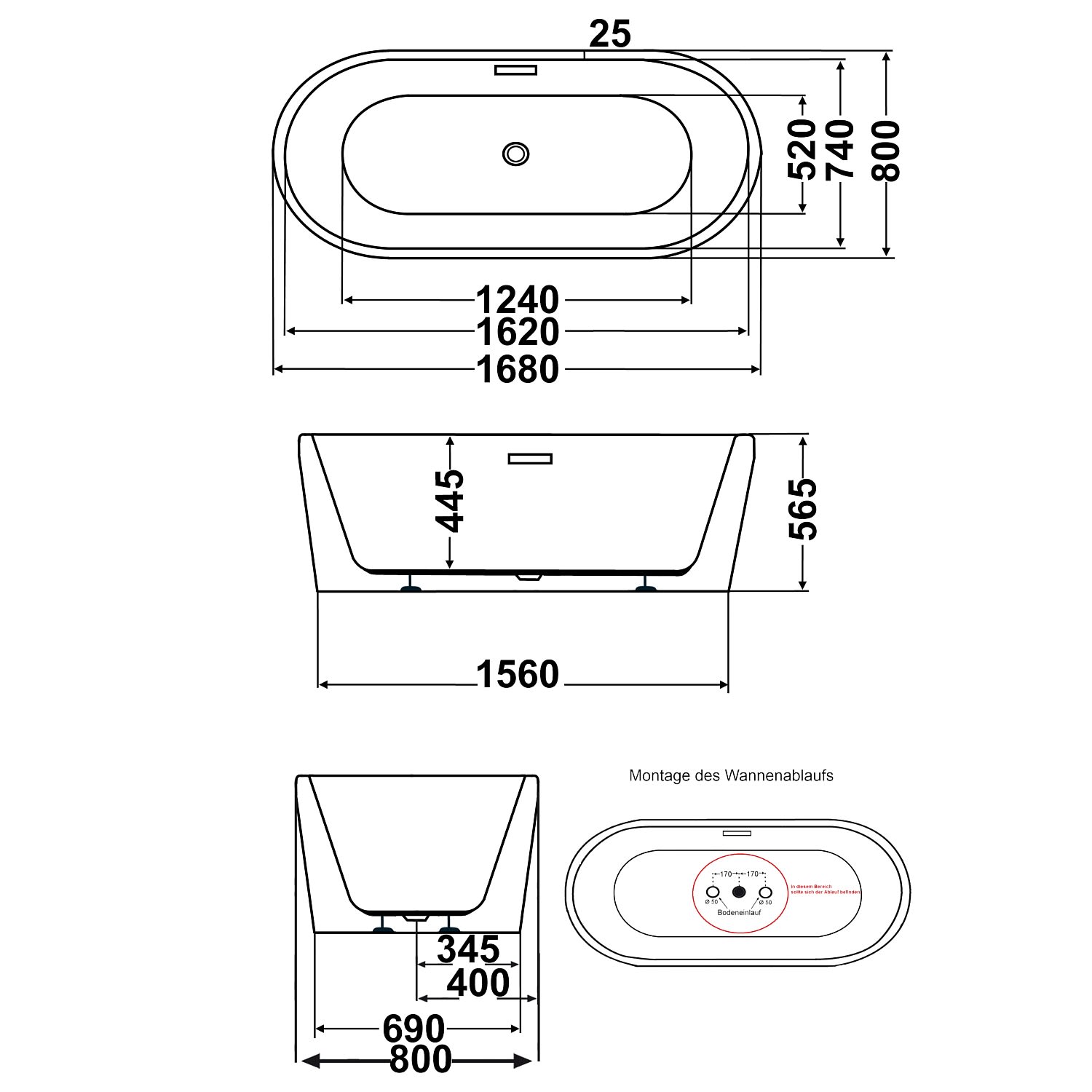Steinkamp Loft freistehende Ovalbadewanne 168 x 80 cm