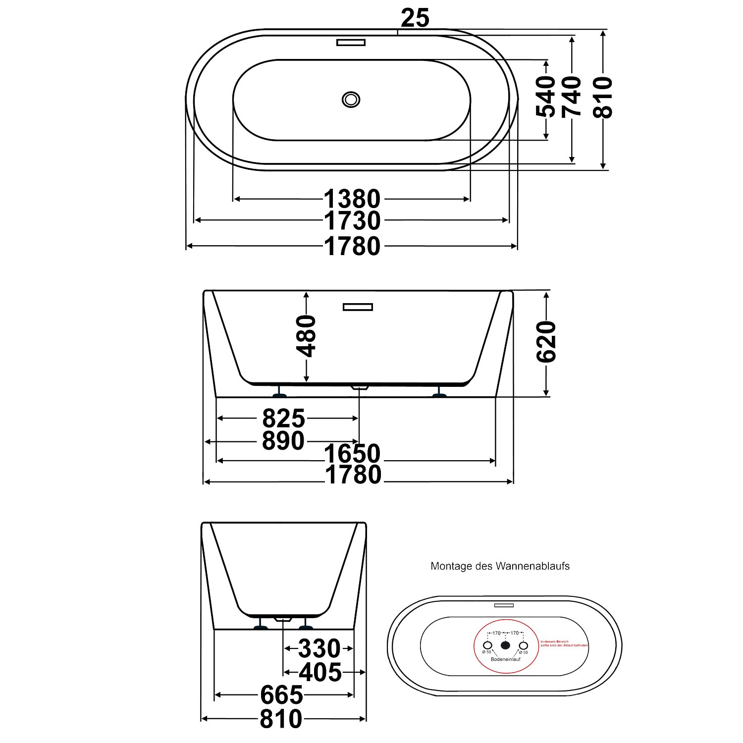 Steinkamp Loft freistehende Ovalbadewanne 178 x 81 cm