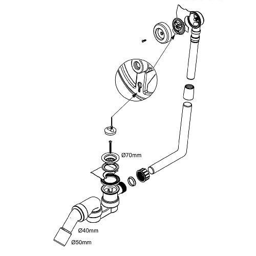 Sturotec Badewannen Ab- und Überlaufgarnitur mit Stopfen für Normallänge