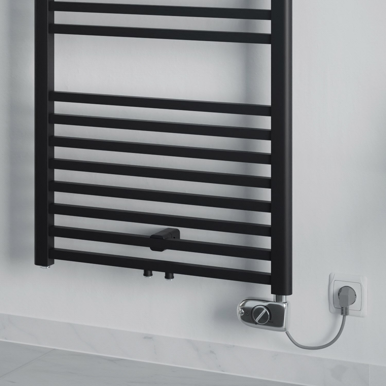 - montagefertig inkl. Heizstab Typ 3 (chrom), Anschlusskabel 1,2 m lang, Thermoflüssigkeit, 1 Befestigungsset (variabler Wandabstand) sowie 1 Stück Verschluss- und 1 Stück Entlüftungsstopfen