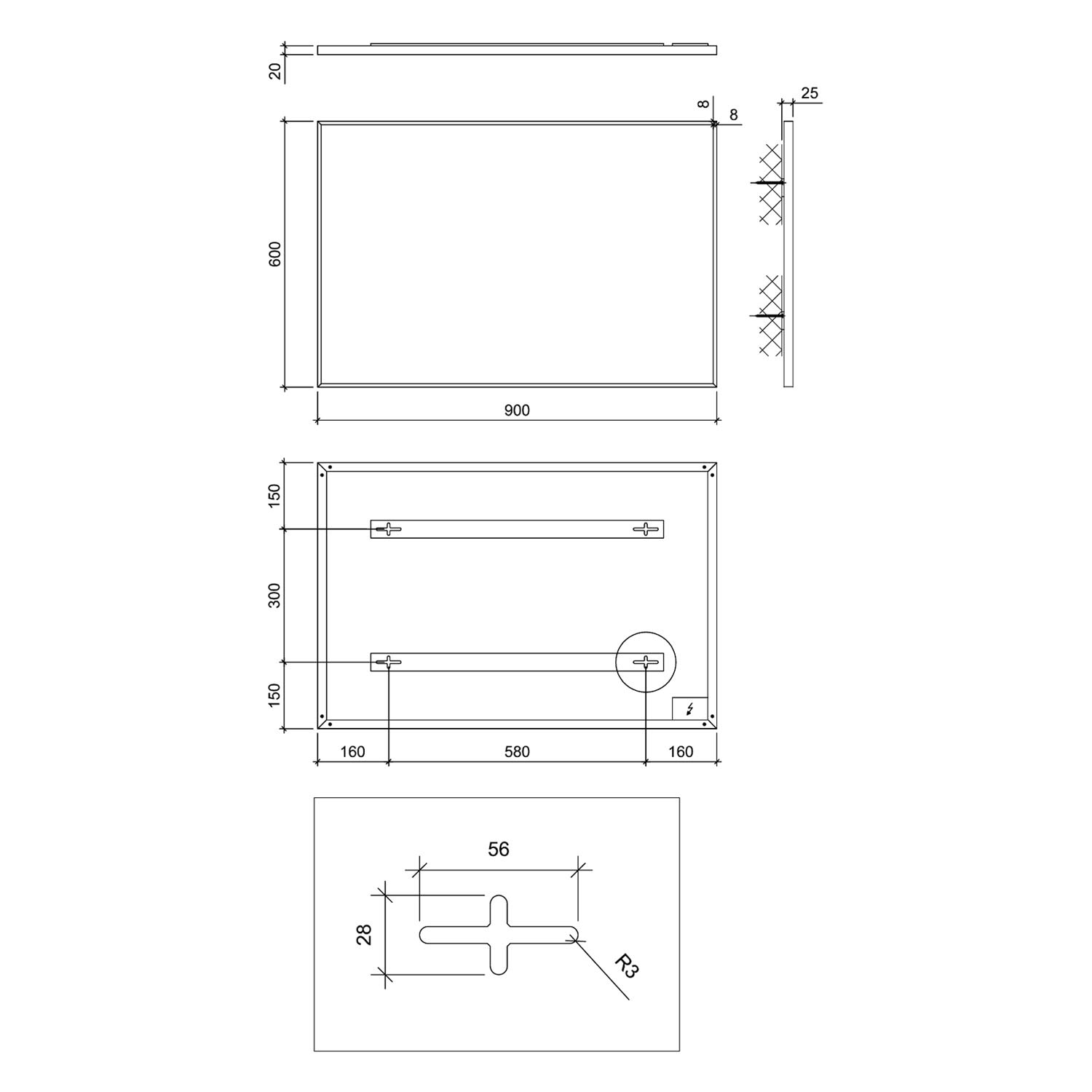 B: 60 T: 2,5 H: 90 cm