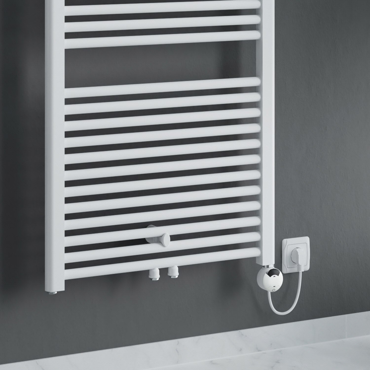 - montagefertig inkl. Heizstab Typ 4 (chrom), Anschlusskabel 1,2 m lang, Thermoflüssigkeit, 1 Befestigungsset (variabler Wandabstand) sowie 1 Stück Verschluss- und 1 Stück Entlüftungsstopfen