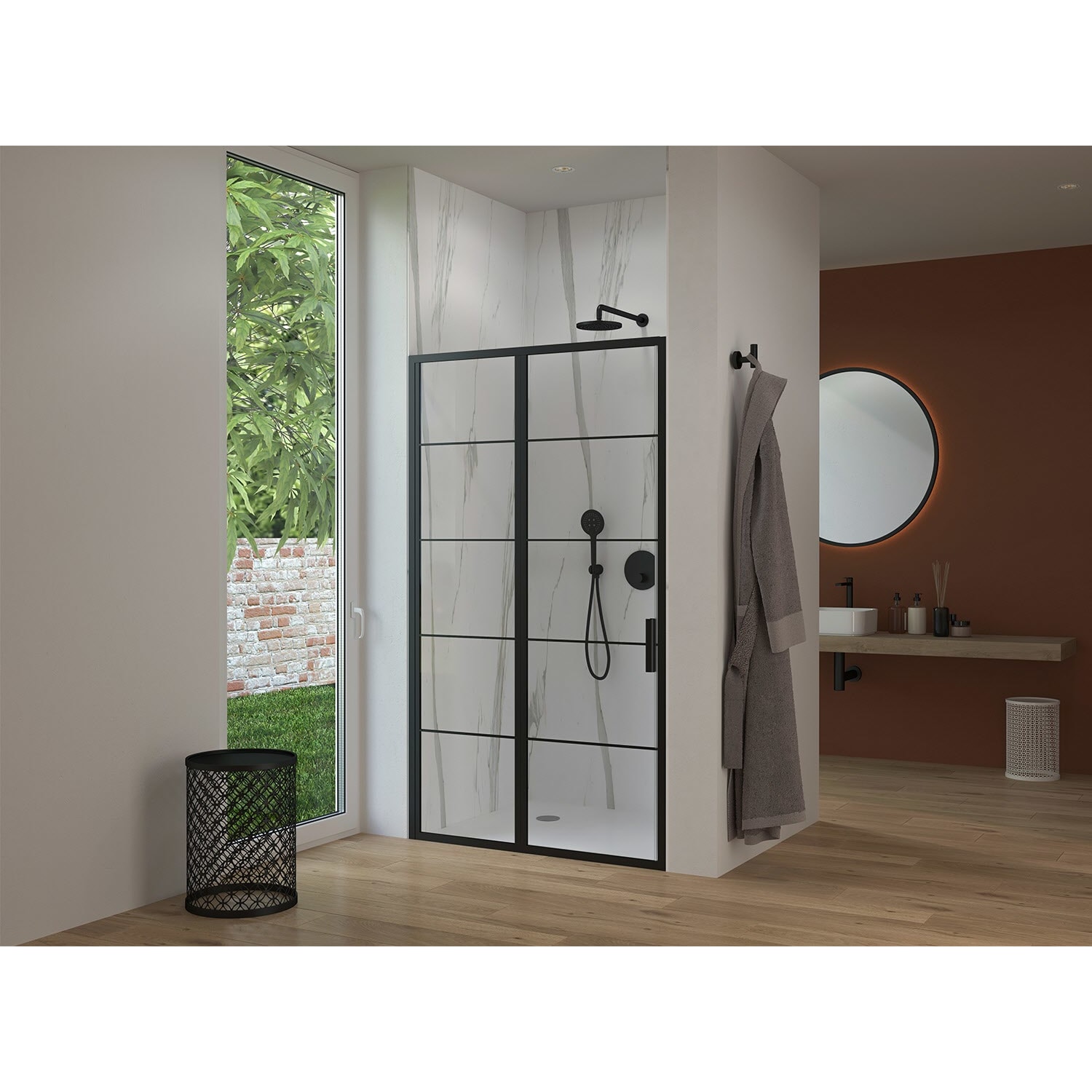 Sturotec 3060 Drehtür mit Festelement 140 x 200 cm für Nische mit Nano-Beschichtung