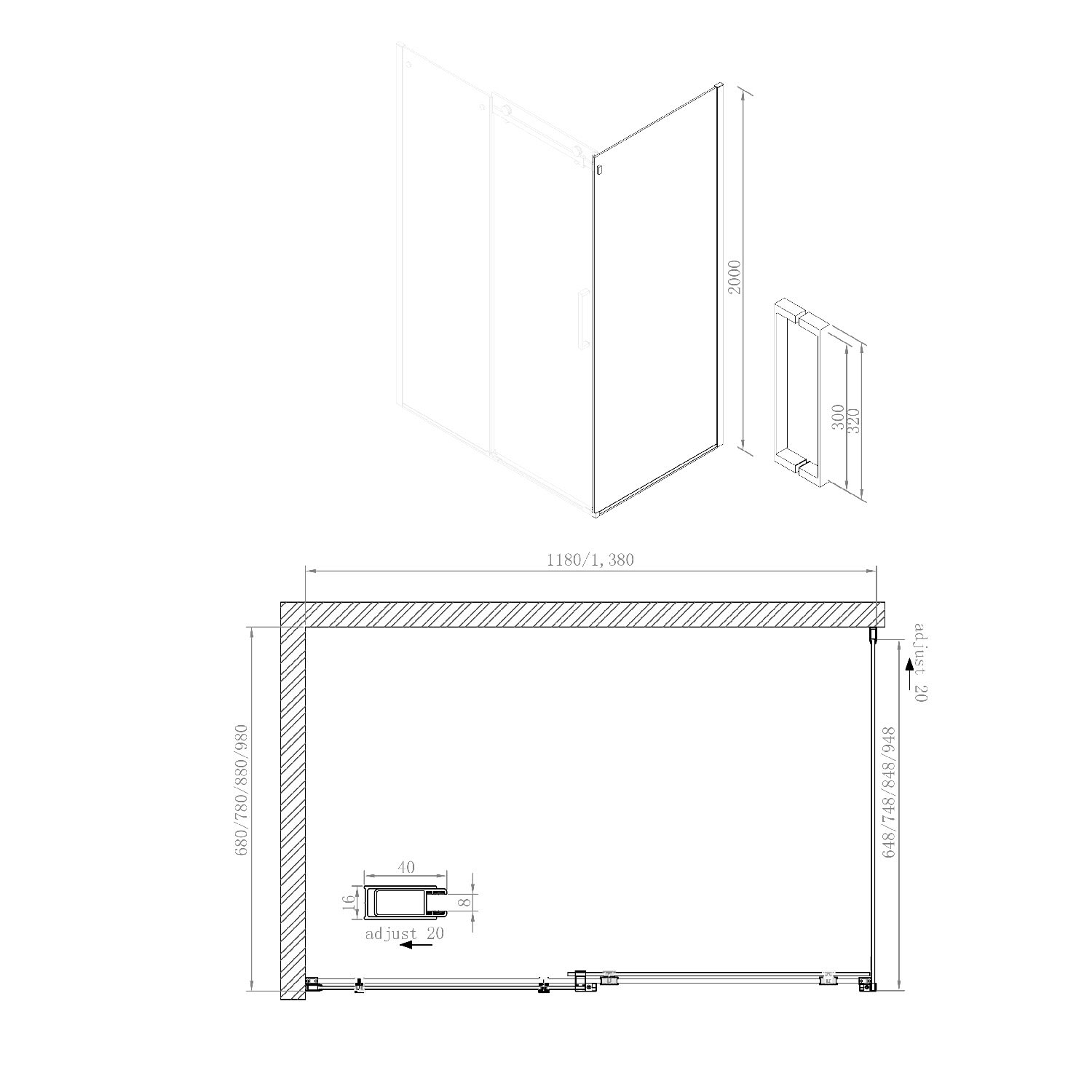 Sturotec 3070 Seitenwand 80 x 200 cm mit Nano-Beschichtung zur Kombination mit einer Schiebetüre
