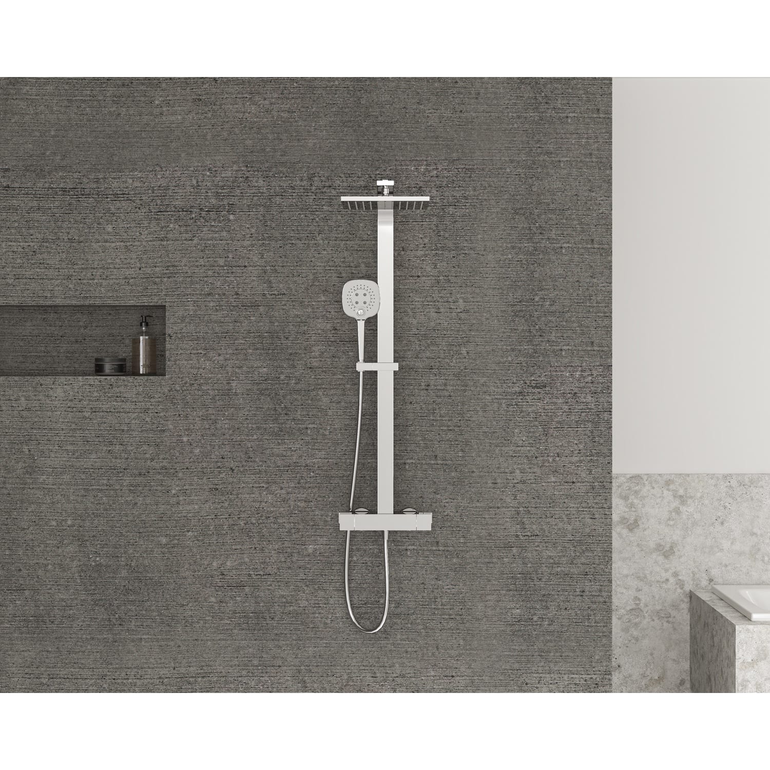 Sturotec Eco-Line 6 l/min Duschsystem eckig mit Thermostatarmatur und Kopfbrause 25 cm